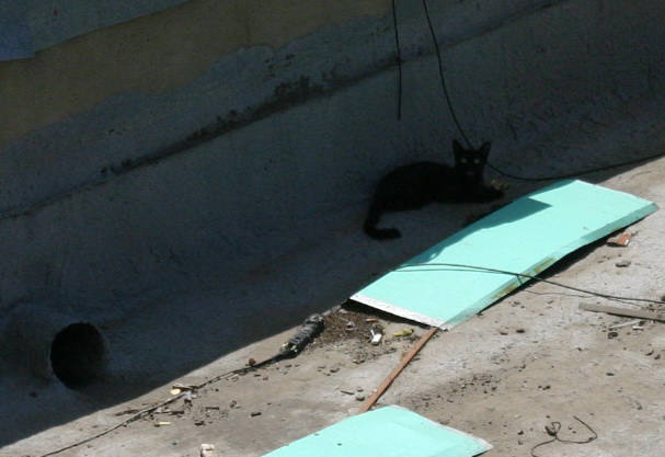 стиллавю, котик опять вернулся на то же место. Вылезла к нему, а он удрал. Прошлась по крыше, не смогла найти. Он куда-то ныкается и знает куда пролезть. Хитрюга черненькая.