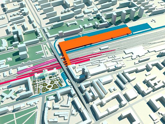 по идее и не нужно. судя по подходу к безопасности на других вокзалах (например Сочи Олимпийский парк) вход на территорию будет осуществляться в удалённом от центрального, безопасном месте. например под автомостом (существующим) возле ЛУВД на кольце троллейбуса 8, 2. ну и с Пархоменко где нить. если отдать место в ЦЕНТРЕ (вместо старых складов) под застройку какому нить МАНу, но по готовому проекту, то ещё и заработать можно. какому нить чиновнику...