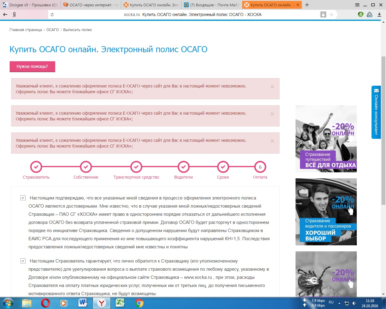 А что это за условия в конце оформления полиса ОСАГО СК ХОСКА, у которых надо проставить галочки и начинать оплачивать? Что-то у других страховых такого нет. Меня это пока остановило, сейчас ошибешься в одной цифре и штраф 30тр и коэф. повышающий внесут в базу РСА 1,5. Кто что думает? - Настоящим подтверждаю, что все указанные мной сведения в процессе оформления электронного полиса ОСАГО являются достоверными. Мне известно, что в случае указания мной ложных/недостоверных сведений Страховщик – ПАО СГ «ХОСКА» имеет право в одностороннем порядке отказаться от дальнейшего исполнения договора ОСАГО без возврата уплаченной страховой премии. Договор ОСАГО будет расторгнут в одностороннем порядке по инициативе Страховщика. Сведения о допущенном нарушении будут направлены Страховщиком в ЕАИС РСА для последующего применения ко мне повышающего коэффициента нарушений КН=1,5. Последствия предоставления ложных/недостоверных сведений мне известны и понятны - Настоящим Страхователь гарантирует, что лично обратится к Страховщику (его уполномоченному представителю) для урегулирования вопроса о выплате страхового возмещения по любому адресу, указанному в Договоре и/или опубликованному на официальном сайте Страховщика – www.xocka.ru , при этом, расходы Страхователя на оплату платных юридических услуг, полученных им от третьих лиц, до получения письменного мотивированного ответа Страховщика, не будут возмещены. - Настоящим Страхователь гарантирует не передавать свои права по возможному страховому случаю по договору цессии (уступка права требования другому лицу), до урегулирования со Страховщиком всех вопросов, связанных с выплатой страхового возмещения по Договору. В случае нарушения Страхователем (потерпевшим) положений настоящего пункта, последний обязан возместить Страховщику все понесенные им расходы, превышающие сумму страхового возмещения, но в любом случае, не менее 30 000 (тридцати тысяч) рублей.