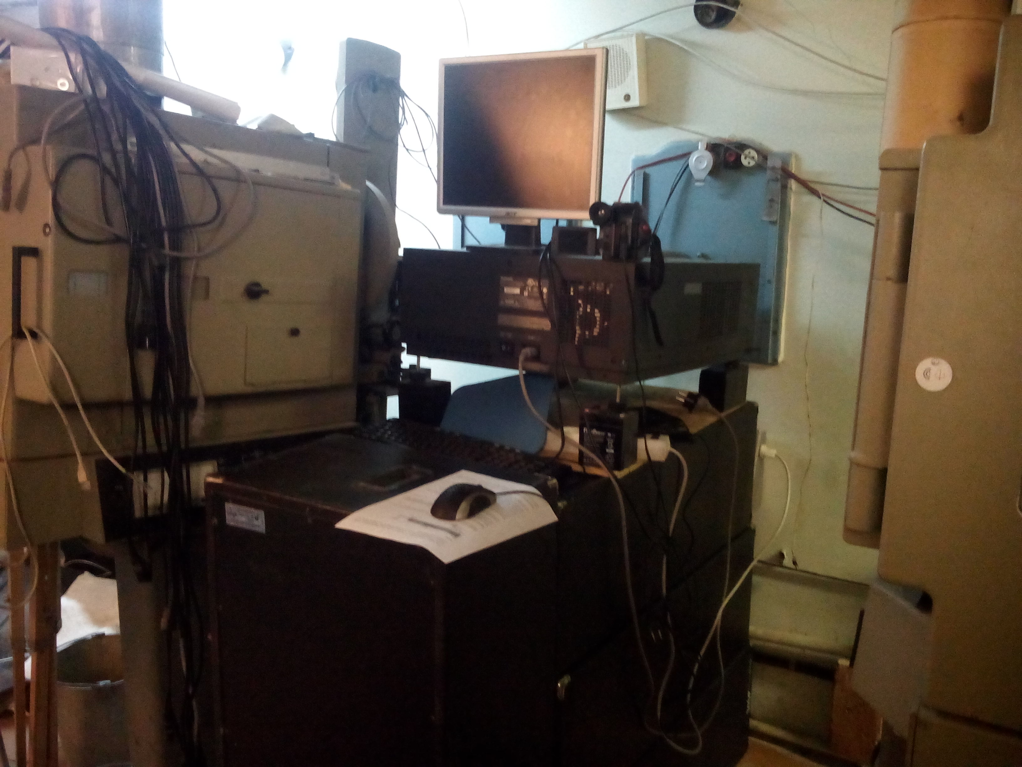 самые обычные кинопроектора 23КПК-2. Корпус силуминовый, станина чугун. Да ладно нафиг, перенёс комп в другое место и норма