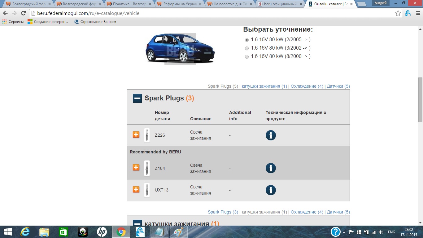 на картинке 1 выбирается вид топлива - бензин, марка, модель, двиг. картинка 2 отображает подходящие свечи из них z226 - под LPG (и естественно бензин) картинка 3. Еще вопросы будут? Кстати китайский бош продолжает ездить на "неисправном электрооборудовании", "перетянутыми прямым свечным ключом и кривыми руками" с наверняка уже давно "лопнувшими изоляторами" в том числе от перегрева от "недотянул" свечами желания выкручивать и смотреть пока нет, ведь и проблем нет