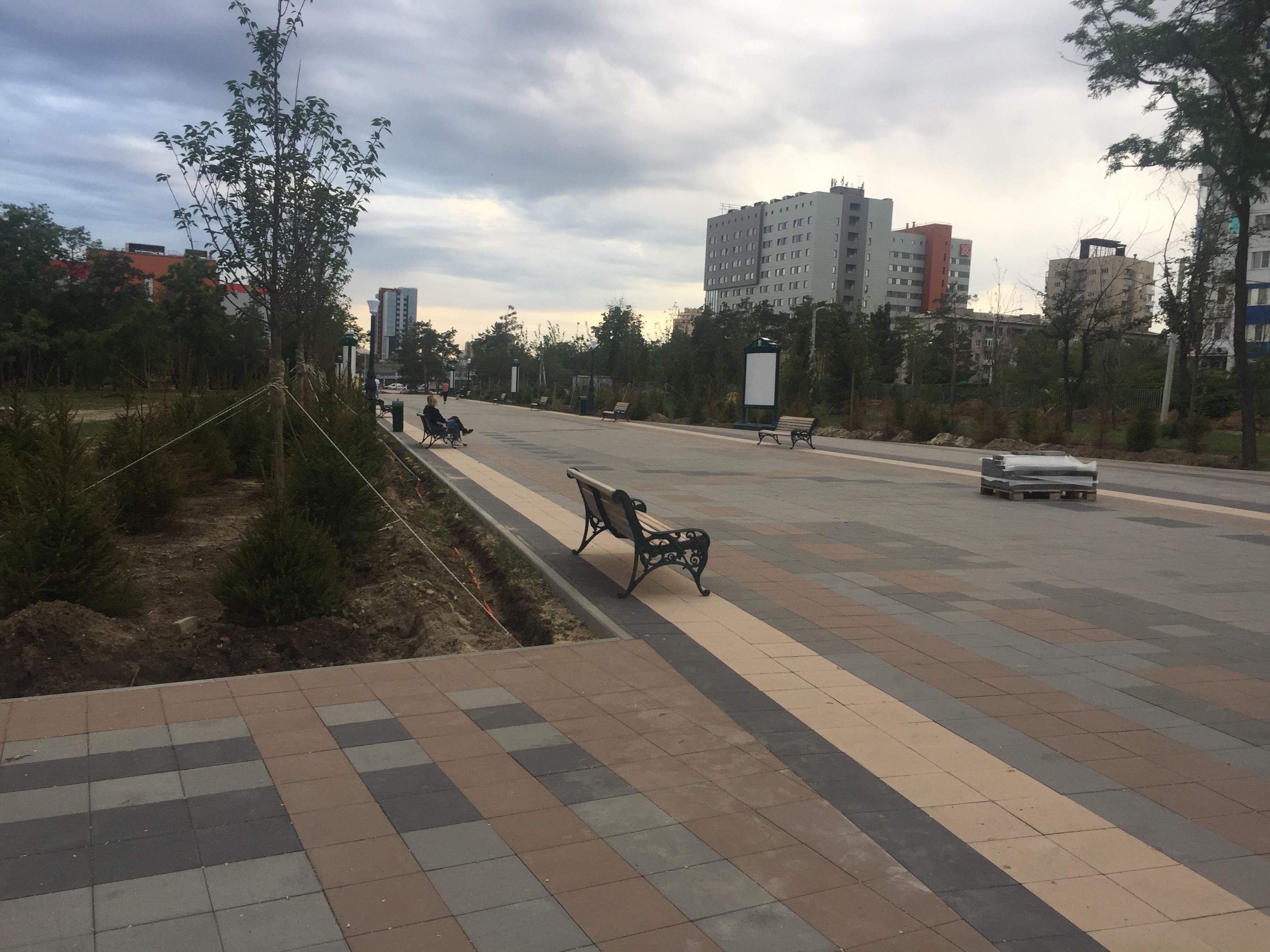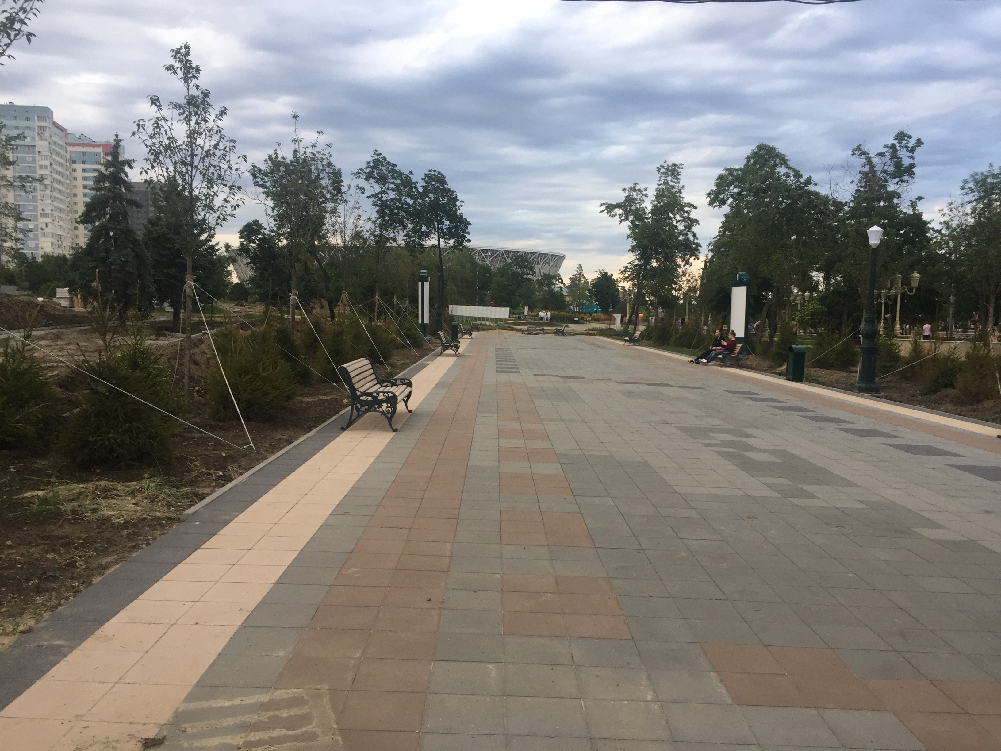 @Вернер, дело в том, что вы не можете это оценить с привязкой к местности...первая широкая аллея из плитки, она идёт под углом через весь парк на расстоянии 15-20 метров от ранее сделанной центральной аллеи, с девичьей башней, клумбами и фонтаном. На фото видно девичью башню на старой центральной аллее. На месте новой раньше была зелёная зона, то есть центральная аллея делила парк на 2 части и вокруг была Зелень. С другой стороны от старой центральной аллея сейчас тоже вырубили практически все что было, частично засадили новыми растениями в виде зелёных сегментов (в высоких и низких бордюрах), а остальное - это асфальтовые и выложенные из плитки дорожки и будут ещё пруды. Вид на пруд И сразу за этой довольно неширокой зоной с будущими прудами и существующими уже асфальтовыми дорожками, проходит широкая дорога, построенная к стадиону, а за ней недоделанные склоны к Волге (обрыв закрыт хлипким забором). Я осознаю, что мои пять лет в изостудии ничтожно мало, чтобы быть экспертом в ландшафтном дизайне и так далее, но я все равно не могу осмыслить КАК какой то «профессионал» это проектировал, а ведь 100% есть проект, с обоснованием, описанием и стоимость внедрения предполагаю где то в диапазоне сотня миллионов-полтора миллиарда... Учитывая, что большинству это все равно нравится, все что тут можно обсуждать - это способы развидеть, забыть, не думать.
