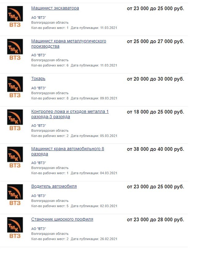 Так телефоны то есть. Не верю, что там вакансий нет. Если про них не написано, это не значит, что завод полностью укомплектован. И тема про Волгоград. Вакансий рабочих профессий в Волгограде полно. Какой смысл был писать про это, упоминая Волжский?