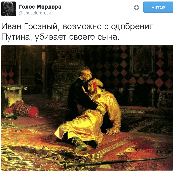 #138: В мире есть и злые люди С ними мы дружить не будем. Не нужны нам их продукты: Колбаса, сыры и фрукты! #130: В мире есть и злые люди. Супервежлив лишь один. Путин Путин Путин Путин Только Путин Господин. #110: В мире есть и злые люди. С ними сало есть не будем! Лучше купим автомат — Папа будет очень рад. #109: В мире есть и злые люди. Если встретишь, как-нибудь, Не забудь его, сыночек, С правой в ухо звездануть! #96: В мире есть и злые люди, С ними строг суровый Папа, Мочит взглядом их по-сути, Суть конечно же не Рада. #92: В Мире есть и злые люди и поэтому, дружок, добрый дядя-Вова Путин нам оружие пришлет. Мы оружие с тобой спрячем возле печки, а научат нас стрелять Вежливые человечки. #89: мире есть и злые люди но ругаться — моветон у кого-то хрен на блюде у других же скреп вагон" #88: В Мире есть и злые люди, Не такой Володя Путин, К ним он вежливо придет Злость и силу отберет #82: В мире есть и злые люди. Что же делать — вот вопрос! Вежливым поступком будет первым бить их прямо в нос! #80: в мире есть и злые люди, завтра в школу пойдем – забывать про них не будем – пулемет с собой возьмем! #74: В мире есть и злые люди, Есть зануды, есть друзья — Мир такой разнообразный, В нем есть даже ты, свинья! #68: В мире есть и злые люди. Мы же их не пощадим Им в фаянсовой посуде Чай с полонием дадим. #62: В мире есть и злые люди И поэтому мы будем на мостах по ним стрелять И тортами в них кидать #61: В мире есть и злые люди, звать к себе мы их не будем. Мы к ним сами подойди, все,что есть у них-возьмем.