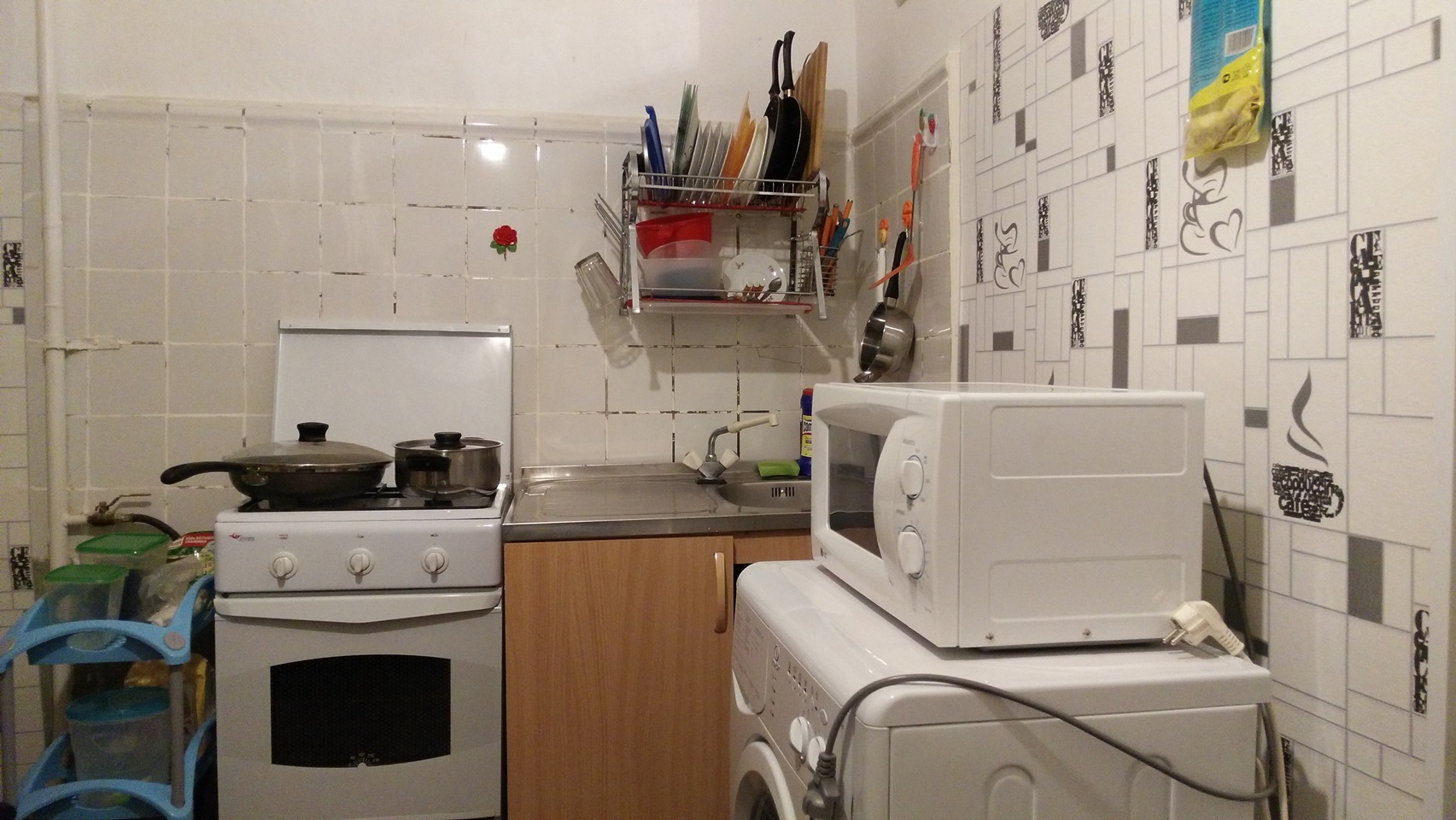 всем необходимым? да там толком посуду хранить негде, холодильник и телевизор - жуть. Стыки плитка на кухне - страшно не то, что гостей пригласить..а самим смотреть...