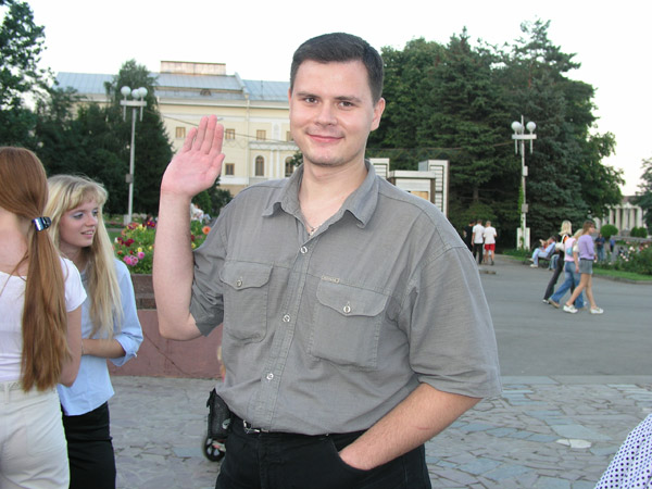 Сделал дело – гуляй смело. Довольный Адаптор, после того, как отмыл свои грязнущие руки в фонтане. Остальные ленно общаются. Виконт нервничает, крутит телефон в руках.