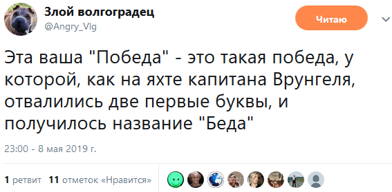 Ну и вот, касательно вчера поднятой темы про Победу. Как таращит-то их, ущербных! Наверное, как блохера сталингулага в опу бут их.