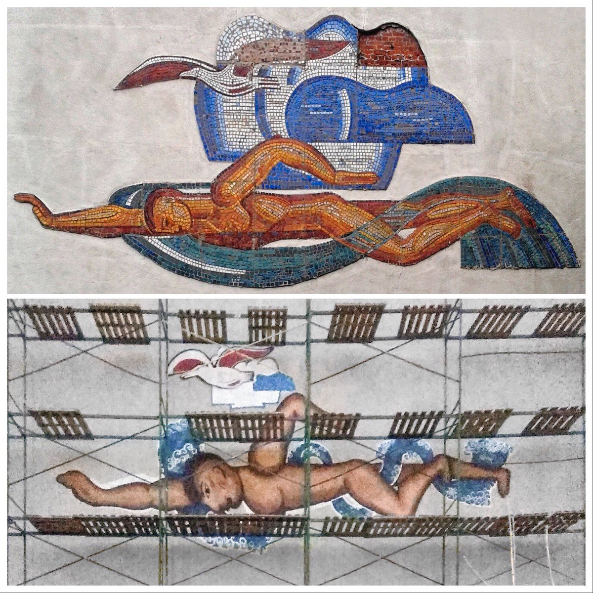 В нижнем при реконструкции нечаянно убили советскую мозаику и затем восстановили: В твиттере сразу вспомнили вот это: