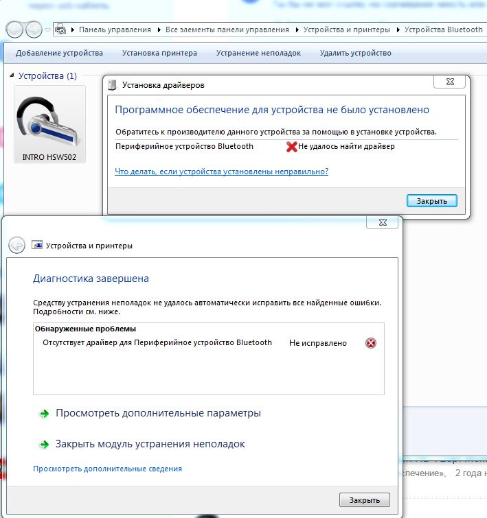 Приобрел простенькие наушнички Intro hsw502, по блютузу нашлись, но при обновлении драйвера, выдает ошибку что драйвер не найден, соответственно звук не идет. Кто подскажет как их сдружить?
