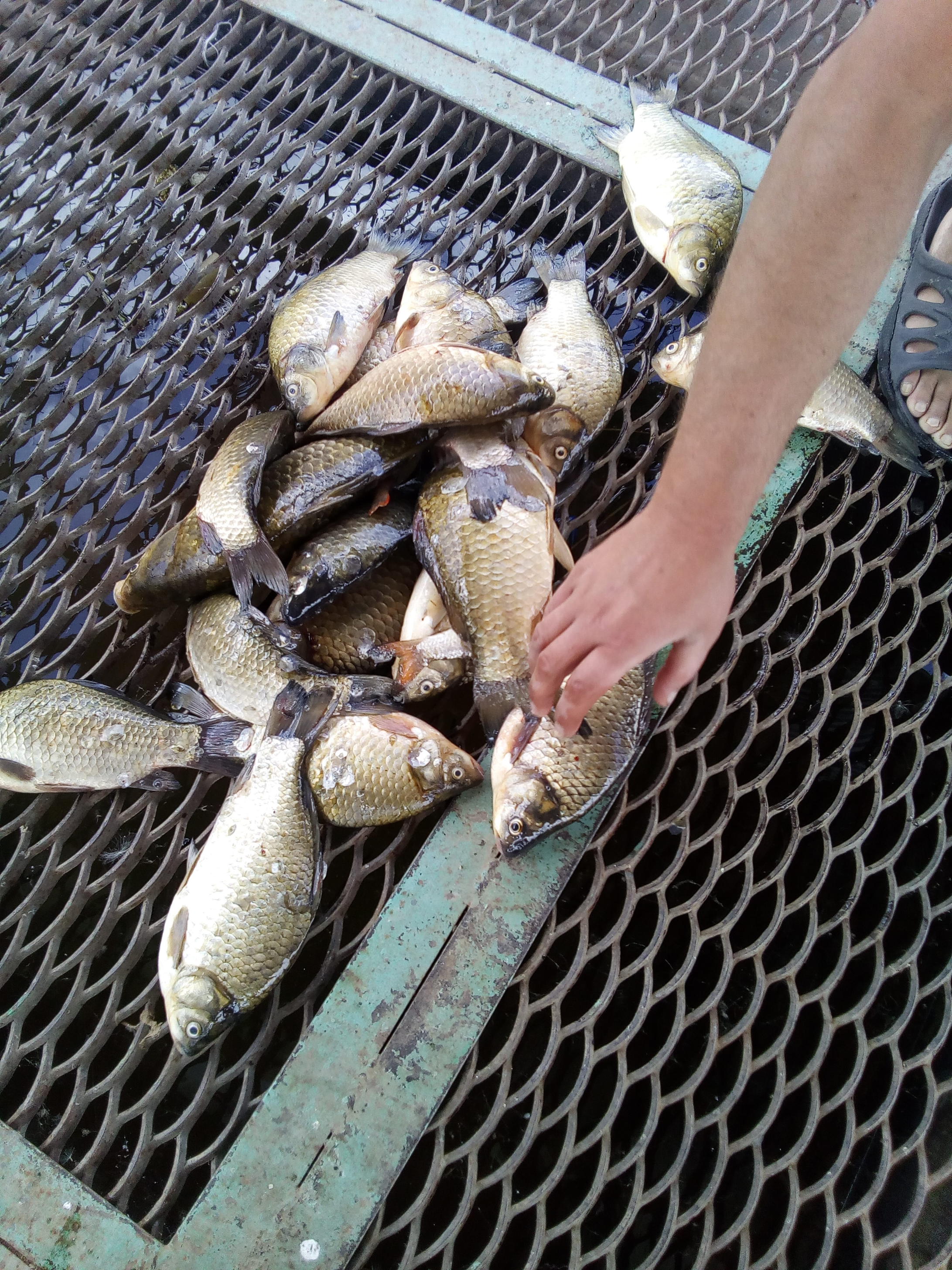 Собирались в субботу часа в 3 на рыбалку, в итоге после "не долгих рассуждений" рванули в пятницу в ночь. Взяли мешок из под лука, набили хлебом, тут же сварили перловку с чесноком, набили мешок и завезли на середину озерца. Далее сидели и долго обсуждали утренню рыбалку и смотрели на звезды. В итоге как планировали встать часа в 3 не получилось изза душевного разговора, но в 6 уже были на ногах, и как божественна ранним утром прохладная минералка. В итоге на каждого по полмешка карася и гибрида, прикормка сделала свое дело Ну и уха тоже божественная получилась ну и самый большой мой рыб ловили на острове на Волге ПС: поднялись на верх после рыбалки и решили что нужно вернуться отдохнуть, спалось на острове как у бога запазухой, только песок во всех дыхательно-пихательных(