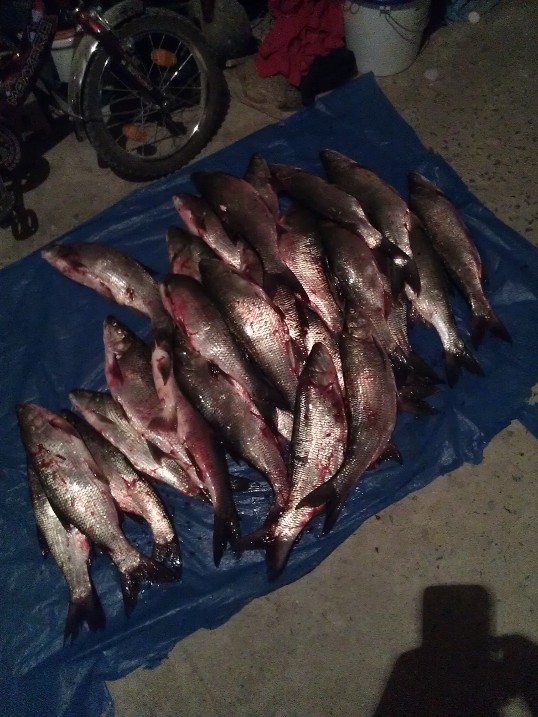 сегодня работаю и никого не трогаю. звонит Лёха. говорит я место знаю нормальное, поехали говорит Вован жереха ловить, точку покажу. в 14-30 цепляю прогресс и стартанули, в 16-00 лодка была на воде, иде-то около получаса ходу и мы на месте. боя можно сказать что не было(очень слабо), сугубо по крачкам ориентировались. но за три часа ловли мы поймали на двоих 28 жерехов, размером от 1 до 2,5 кг. в общей сложности килограмм 40. ловили исключительно на кастмастеры, я ловил на Акмэ 14гр блестящий с синим, Лёха на блестящий с медным. поймали примерно поровну. бензина не много выжгли, осталось ещё даже в баке))), конкурентов не было ни одного. вообщем прям афигенно прошла вечёрка. в 20-15 лодка на прицепе уже была. телефон с собой не брал, ибо он за неделю вымотал весь мозг. поетому фотки только у Лёхи в гараже сделали. завтра в жереховую тему свои 5коп вставлю.