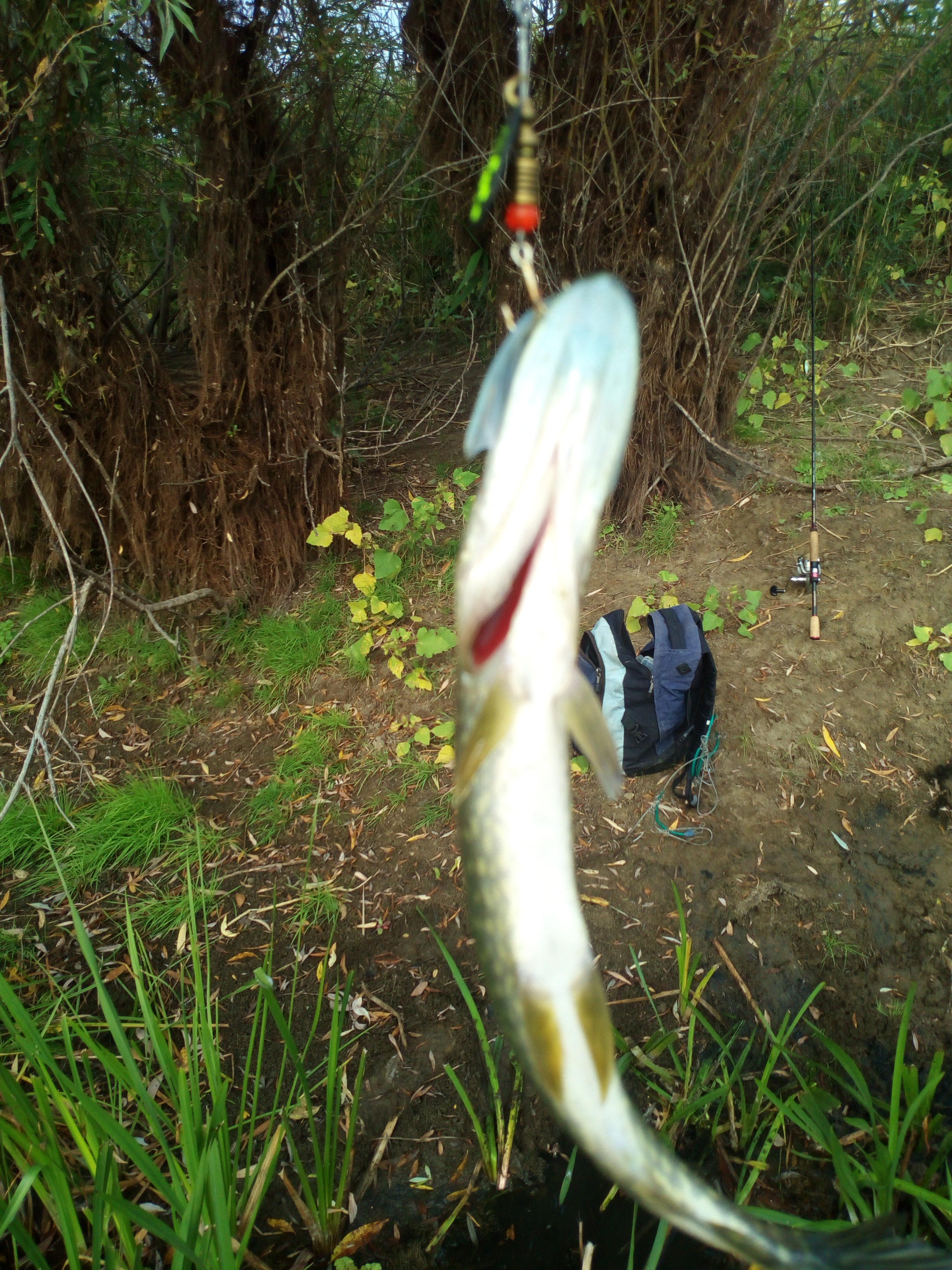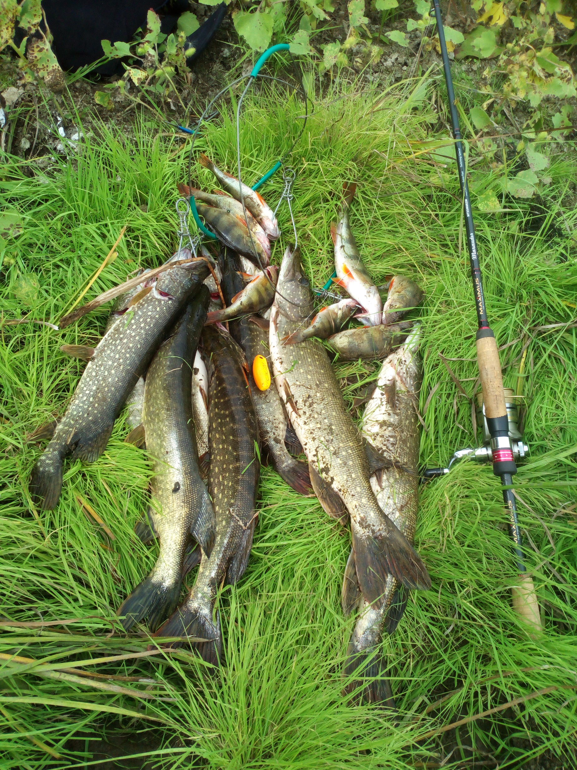 Сегодня с друзьями посетили Ленинскую пойму. Я ехал с конкретной целью, половить щуку. 3 недели назад нас здесь радовали тоько шнурки и карандаши. Чтобы отсечь мелочь решил начать с крупных блесен, но мелочь была очень голодная и кидалась на блесну размером, чуть меньше ее самой. Друзья в это время неплохо оттягивались по окуню- вертушки рулили. Тоже поставил вертушку - стал попадаться неплохой окунь и опять шнурки. Решил погонять воблеры на мелководье и вот тут поперло. Рулил tsuribito Pike strike. Сначала у него с'ели силиконовый хвост. Но он продолжал ловить и ловить. Откровенных шнурков небыло, было много сходов (видимо крючки мелковаты). Потом попалась щучка за кило, очень резвая, сделала пару свечек и трясла башкой, но засеклась очень хорошо. И вот когда я хотел ее выбросить на берег, она сделала умопомрачительный кульбит у моих ног и ушла вместе с воблером - стальной поводок сломался. Начались поиски следующего фаворита и он был найден - знаменитый Малас, точнее его копия от Aiko. Даже окунь не пропустил его. Домой забрал сильно подраненую щуку, ну и окуней на засолку. Сложилось впечатление, что крупная щука в основном, не атаковала, а отгоняла конкурентов, очень много было холостых выходов без атаки, и когда ее "доставали", она кусала. Рыбалка удалась, хотя ночью перед выездом, какой-то не хороший человек открыл мой автомобиль и спионерил навигатор, нафига он ему нужен, а там все мои точки были забиты. Ну и замки в дверях прийдется менять- развортили все. Хорошо, что снасти не тронули.
