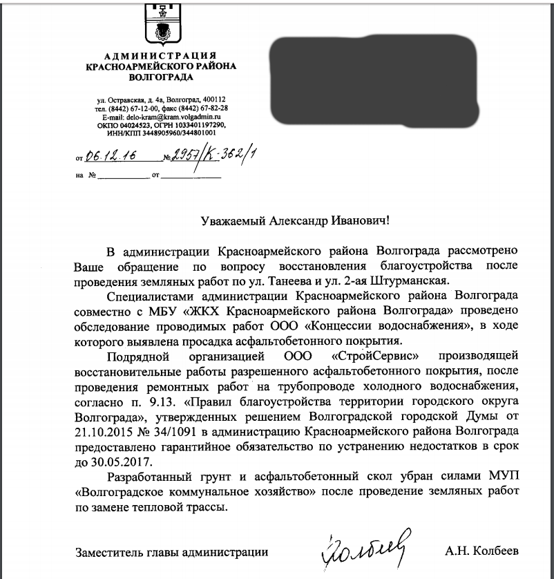 Написал письмо в администрацию Красноармейского раона по-поводу заделки асфальтом ям после ремонта. Кому интересна вот схема.