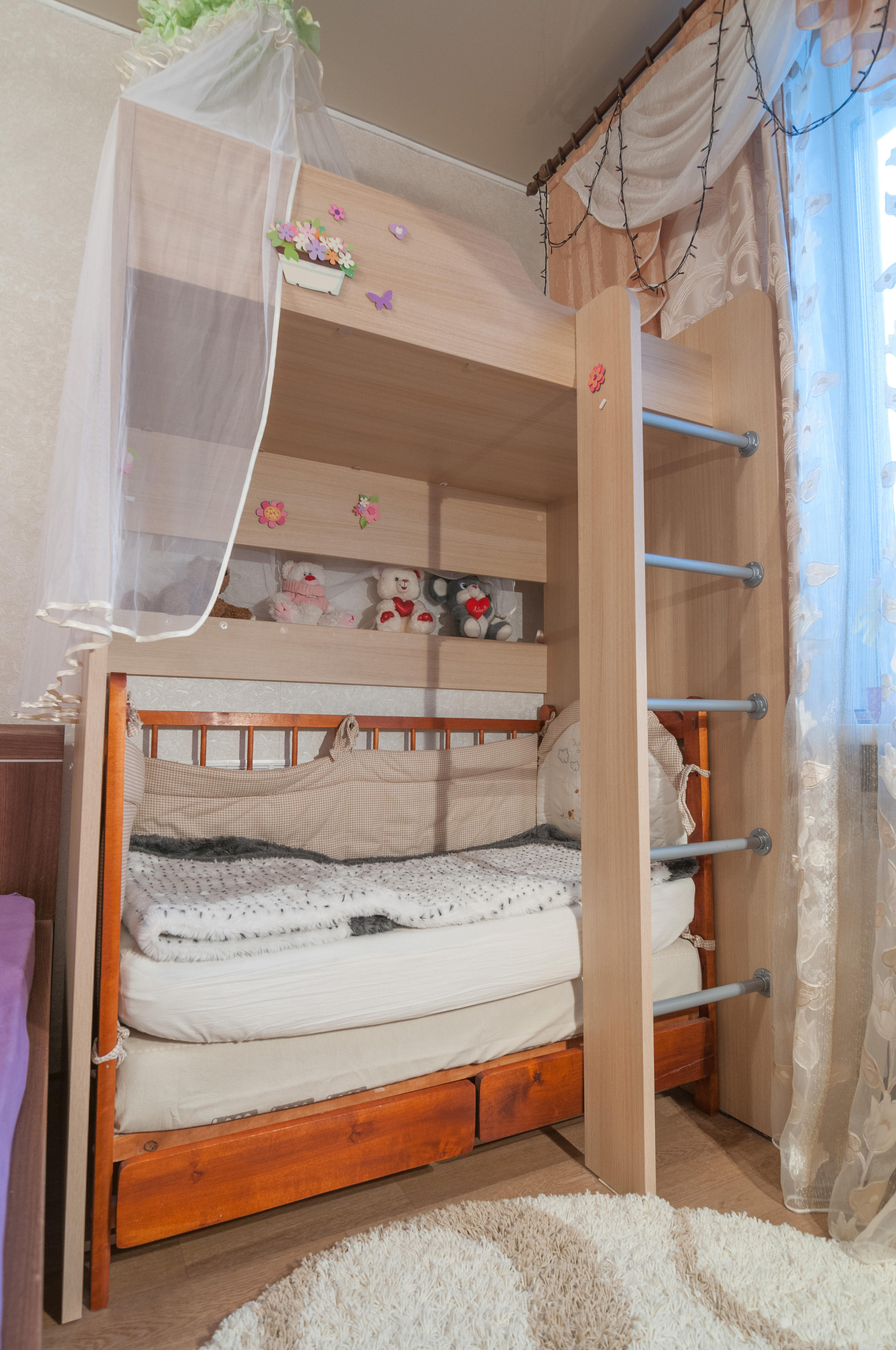 Компактная кровать для одного или двоих детей двухярусная. Изготовлена под заказ по индивидуальным размерам. Для исключения опрокидывания предусмотрено крепление к стене. Внизу свободно размещена стандартная детская кроватка. Может быть заменена диваном, столом и т.п. Спальное место сделано под стандартный размер матраса 120х60х12(14). Матрасы ортопедические. Наполнитель кокос. Сразу были застелены клеенками, чистые. Цены: - кровать основная (верхняя): 20 000 р. - кровать нижняя: 2 000 р. - матрас: 500 р/шт. +7 927 526 5три 9три