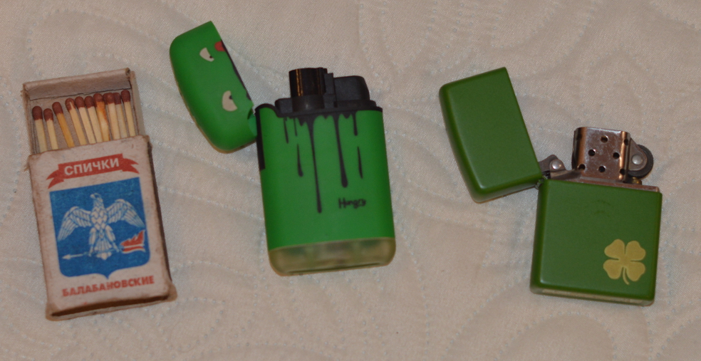 Итак, подводя итог по первому мифу, хочется сказать, что совейские орки так и отставали глотая пыль капиталистам, но все же копировали у них убого. Вот мои три зажигалки(слева направо): Духовная зажигалка(Русские спички), полу-духовная(китайская газовая зажигалка) и бездуовная(на топливе из Брэдфорда - Zippo, но качественная все же!):
