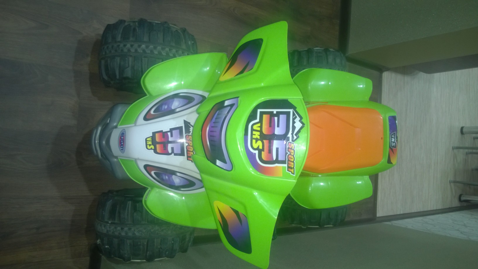 Продается за ненадобностью. Купили и все время простоял. Один раз брали на турбазу, покатались дети пару часов и все. Функциональные особенности: - Предназначен для детей от 3 до 8 лет - Одно удлиненное посадочное место - Максимальная нагрузка 40 кг - Большая проходимость и возможность езды по любой поверхности (асфальт, песок, трава, гравий, земля), легко преодолевает подъем с уклоном до 17% - Может двигаться вперед, назад и поворачивать направо и налево - Коробка с тремя передачами: две передние (скорость на первой передаче - 4 км/ч, на второй - 8 км/ч) и одна задняя (скорость - 4 км/ч) Технические характеристики: - Двухрежимный двигатель: 2х25W - Две аккумуляторные батареи по 6V 12Ah, время перезарядки - 10 часов, время работы батареи 2-2,5 часа - Большие пластиковые колеса с резиновыми накладками - Руль оснащен защитой для рук - Движется при нажатии на ножную педаль - Акселератор и тормоз совмещены в одной педали - На приборной доске есть переключатель пониженной/повышенной передачи, а также переключатель движения вперед/назад
