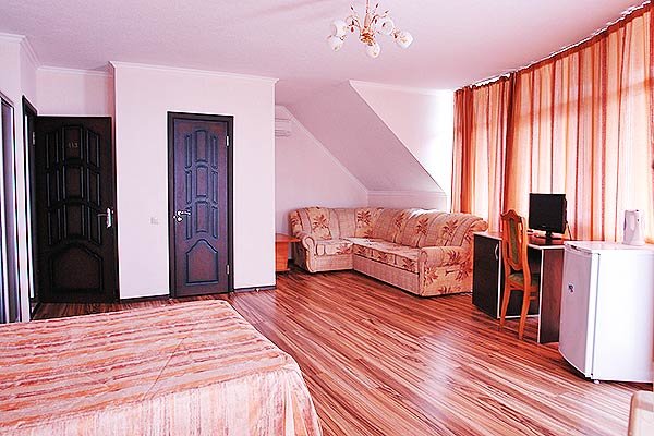 zz, еще раз: в июне резко поменяли дату заезда,вместо 4 августа решили поехать 1июля. Оставалось 2 недели. Номер требовался на 4ых, ничего толком подходящего не было. Когда нашли приличный номер на 4ых, 200м от моря,решили остановиться на нем. Да и для меня гостевой дом: это частные домики. Тут же прям гостиница,даже 2звезды у нее есть)))) Основное,что сыграло роль:комфортный,просторный номер,светлый, с кондиционером и ежедневной уборкой в номере( которую сделали за 7 дней 2раза...)