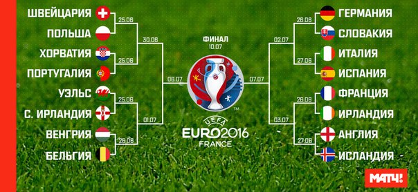 Ralf, угу... чемпионат "укатаек без шансов" чего-то сильно сильно проседает - расскажите "укатайкам" из Португалии, Англии, Украины, Австрии, Германии, Испании, что они всяких уэльсов, россиев, североирландцев, венгров, исландцев, хорватов и т.д. должны были "укатать без шансов"... вот я б на их лица глянул, когда б вы им это рассказывали