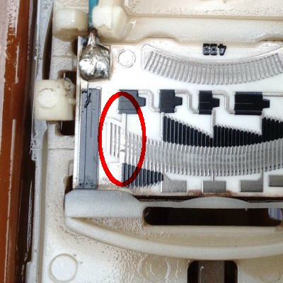 Не впечатлило. Степень износа та же. Целостность левой вертикальной широкой металлизированной дорожки нарушена. Как раз от неё зависит работоспособность первой четверти диапазона ДУТ. ( }{olodok бы сказал: }{ на }{ менять - только время терять. )