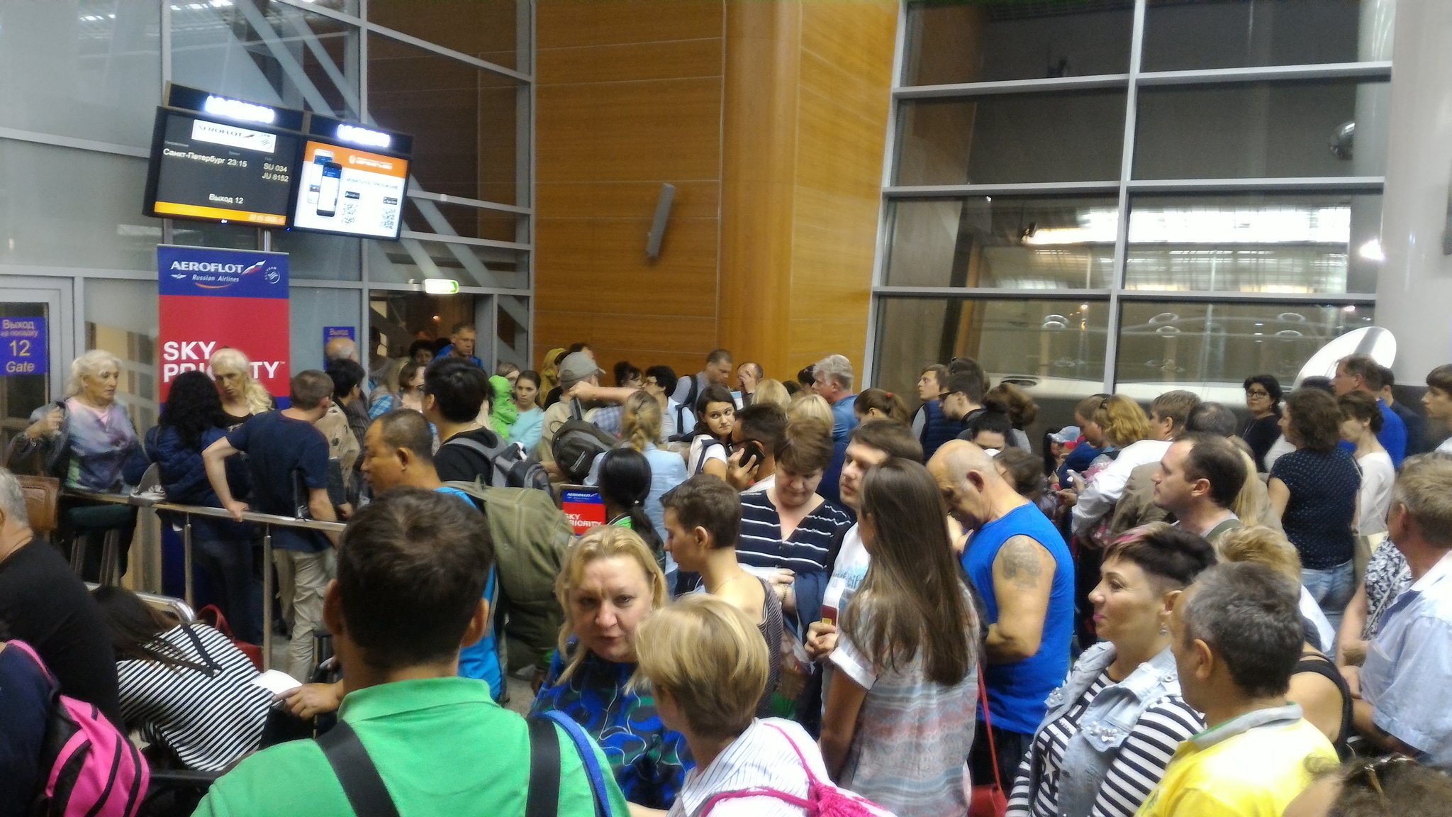 АФ видимо решил действовать максимально жестко по отношению к пассажирам. Жаловаться и писать нужно, однозначно. В Шереметьево уже несколько раз убеждался, что не способны хотя бы нормально проинформировать о задержках и их причинах. В июне задержали на 1,5 часа без какой-либо информации и объяснений, просто вся толпа стояла у выхода на посадку и ждала не пойми чего. Но это мелочи, на фото пассажиры рейса на Саратов, которых с 17:00 уже 3-й раз посадили и выгнали из самолета, т.е. объявляют посадку, сажают на борт, те сидят час-два и их просто высаживают в зал вылета. И так 3 раза подряд без объяснений и предоставления каких-либо компенсаций. Время на фото уже 22:20)