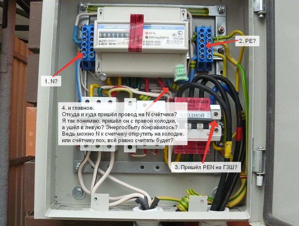 Следовательно должен быть опечатан провод PEN пришедший на ГЗШ и провод N уходящий с ГЗШ на счётчик.