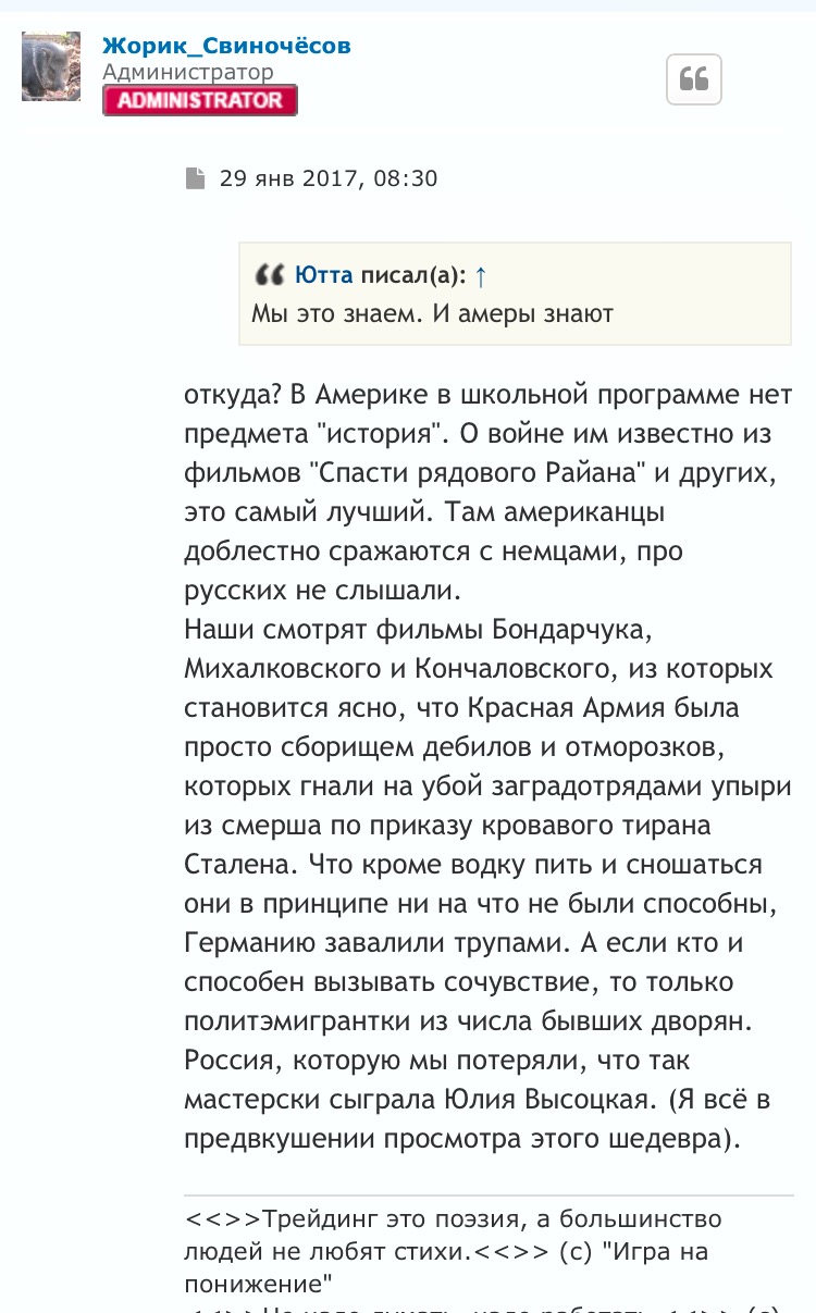 Зато можно хрень нести и самим себе умилятся. Интересно , Бренд откуда взял эту информацию про преподаванию истории в США? Как обычно , пиндосы идиоты.