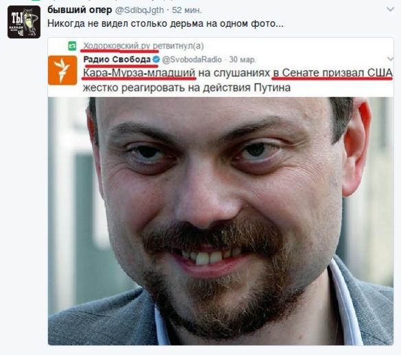 Как кремлебот, позволю выложить с ольгинской помойки красивую картинку. Прав был В.Р. Соловьёв, когда по радио сказал как-то, мол, достаточно посмотреть на физиономии наших оппозиционеров, становится тошно. Ну и ещё интересно про "статус" этого оппозиционера, что его в Сенате заслушивают.