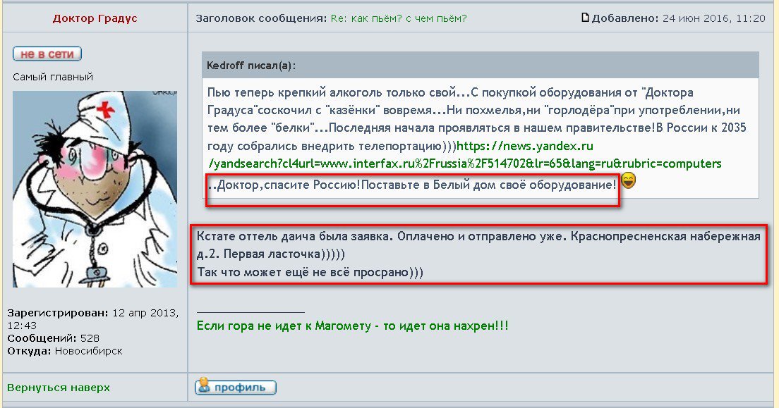 И щас перегонять будут. Белый дом в Москве закупил самогонный аппарат. Скриншот с форума производителя аппаратов.