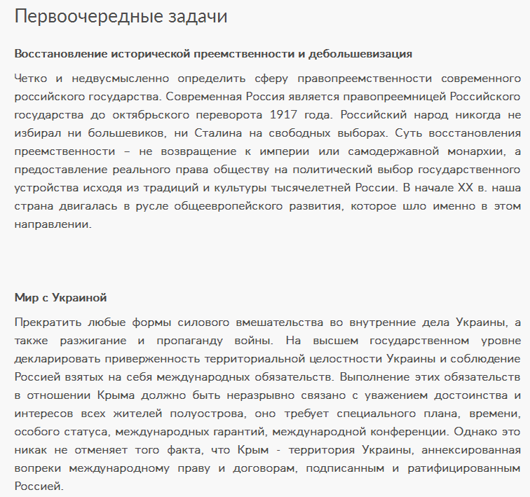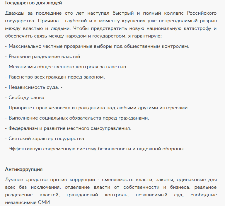 а я бы нет. Похоже у Явлинского тоже развивается ПГМ. Думаю нормальный человек хотел бы видеть программу решения экономических вопрос, а не всякие декоммунизации, свободы слова и прочую ерунду, которые мы в 90-е слышали. Да и как возможно примирение в обществе, если он отрицает большевиков и Сталина, к которым в нынешнем обществе у немалого количества людей положительное отношение. Опять же, учредительное собрание. Кто помнить историю, тот знает чем закончилась работа этого органа