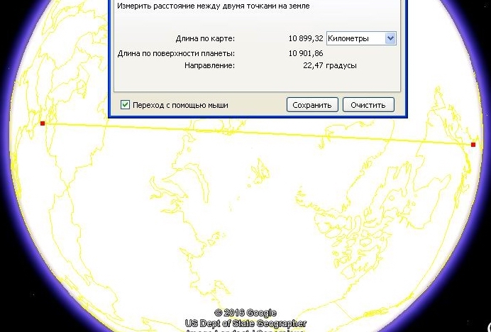 Так это же очевидно. Потому что эта точка в провинции Хэйлунцзян является кратчайшим расстоянием от Китая до Вашингтона. Это легко проверить, например, с помощью программы Google Earth. В этой программе отмечаешь две точки и она рисует кратчайшую дугу между ними. И вот что у нас получается: