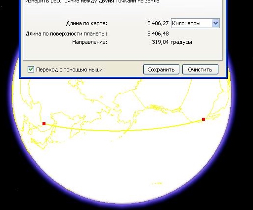 А теперь к примеру возьмём пару других точек - на западе и востоке Китая. Расстояние получается гораздо больше.