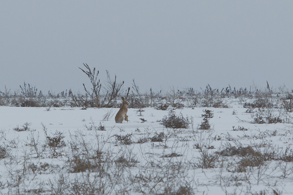 Заяц. Снял в Астраханской области, в мае. (Далековато было)