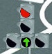 3aвулoн, такого светофора (или режима его работы с одновременно включенными разрешающим и запрещающим сигналами , если зелёный сигнал с контурной стрелкой) не существует в природе или этот светофор глючит. В реале может быть так
