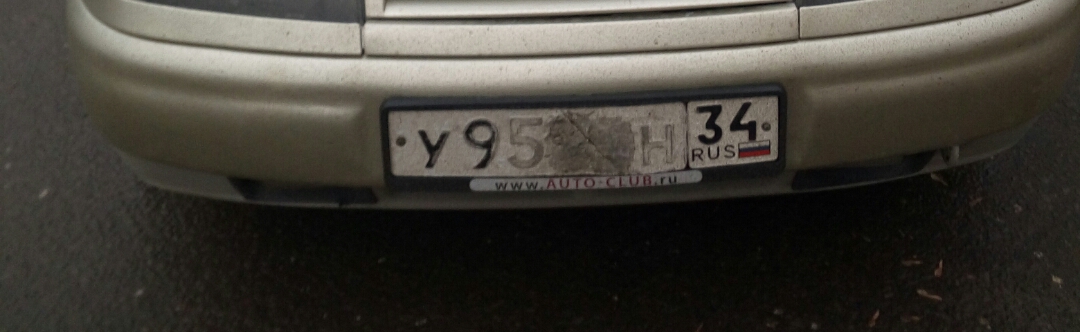 этот номер абсолютно не читаем из-за повреждения (должен быть заменен) или ручного затира, в любом случае номер не соответствует госту - это лишение если номер читаем с 20 метров претензий вообще нет, если не читаем это 500 руб. отсутствие на номерах краски черного цвета не обозначает их не соответствие госту - есть такое разъяснение верховного суда