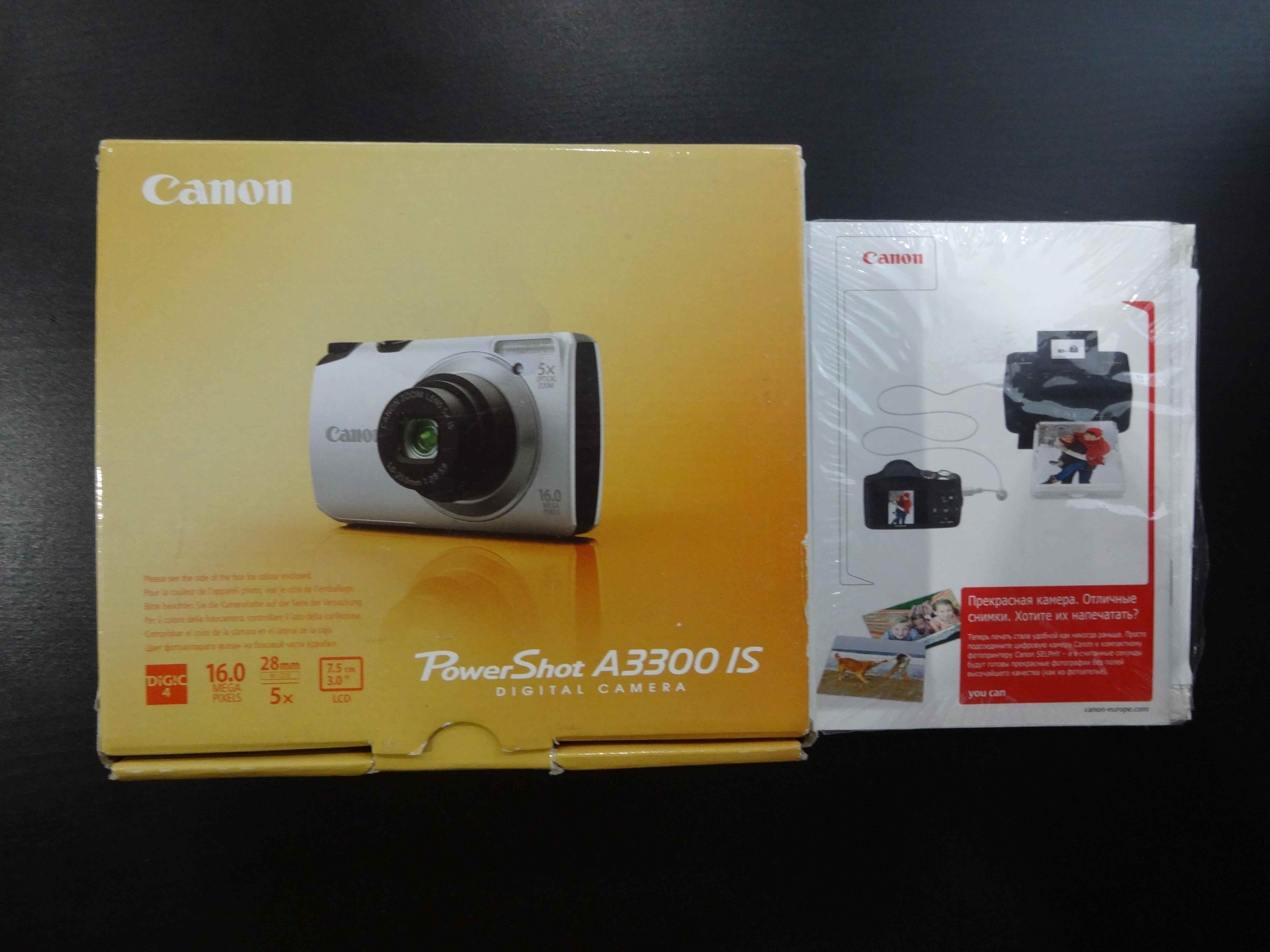 1. Цифровой фотоаппарат Canon PowerShot A3300 IS в коробке + Флешка 4Гб Разрешение матрицы 16 Мпикс, Оптический zoom 5x, Видоискатель отсутствует, Дисплей TFT 3" встроенный 1000 руб.