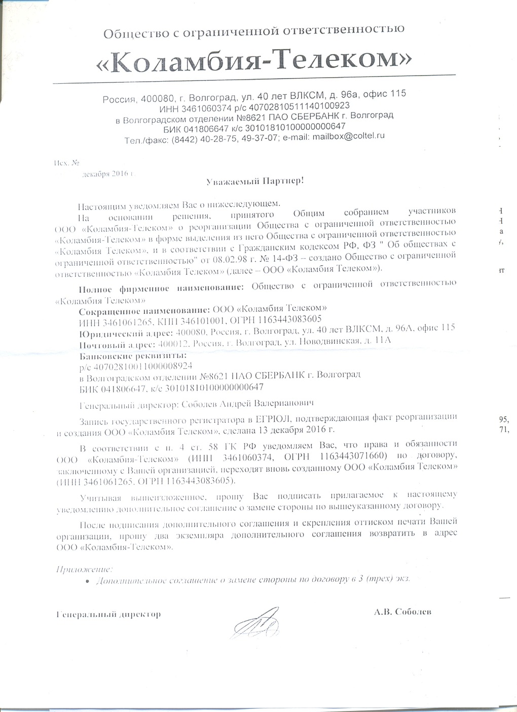 Volsan, Нам принесли официальное уведомление и доп. соглашения в декабре. Но подписать и платить тоже не можем, так как ООО "Коламбия Телеком" лицензию оформляют, обещают предоставить в феврале.