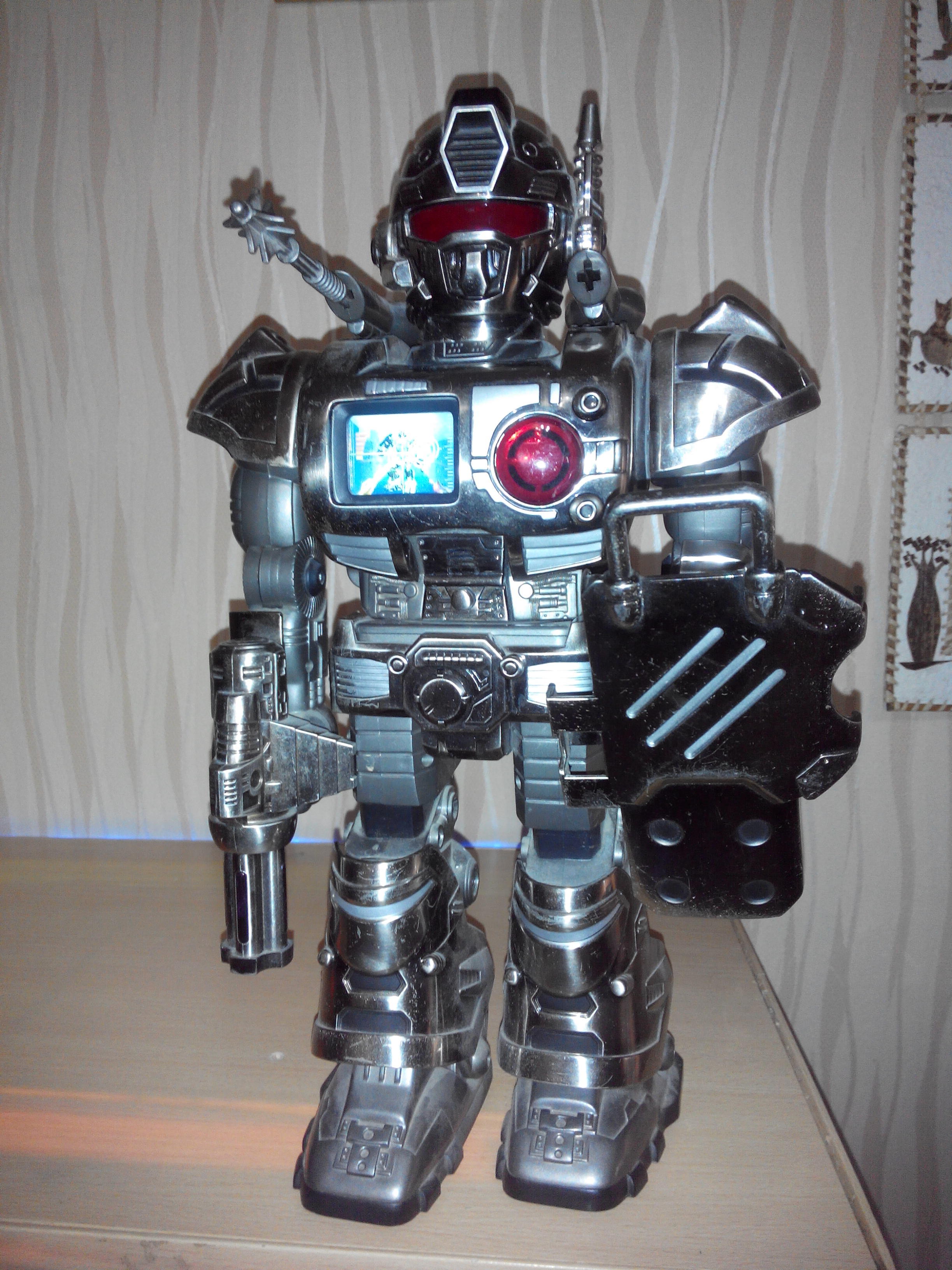 Продается просто шикарная игрушка, привезенная в свое время из Испании. Робот в идеальном состоянии, ходит, говорит, поворачивает туловище, мигают глаза, играет музыка. На батарейках. Цена - 400 р. Забирать с Красного.