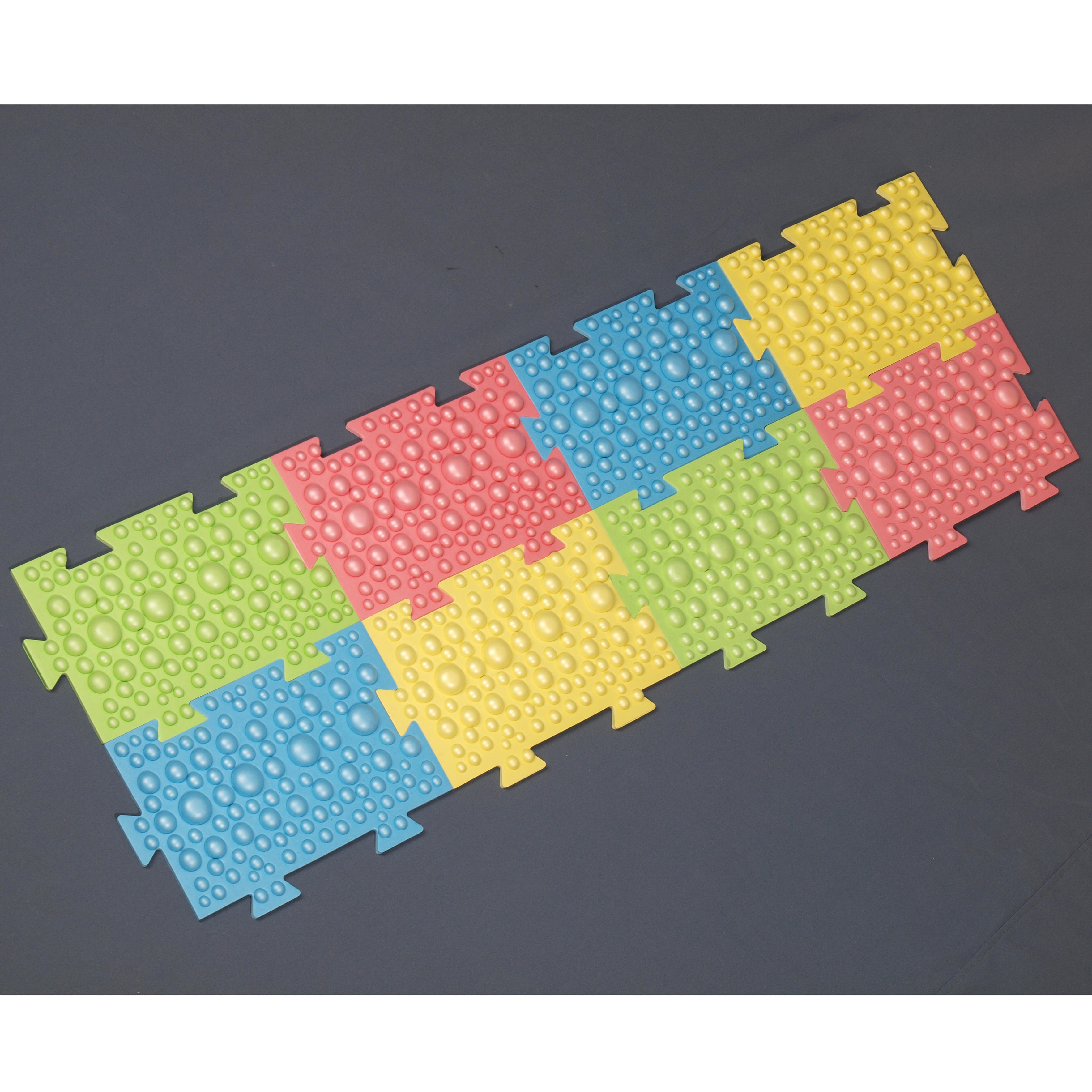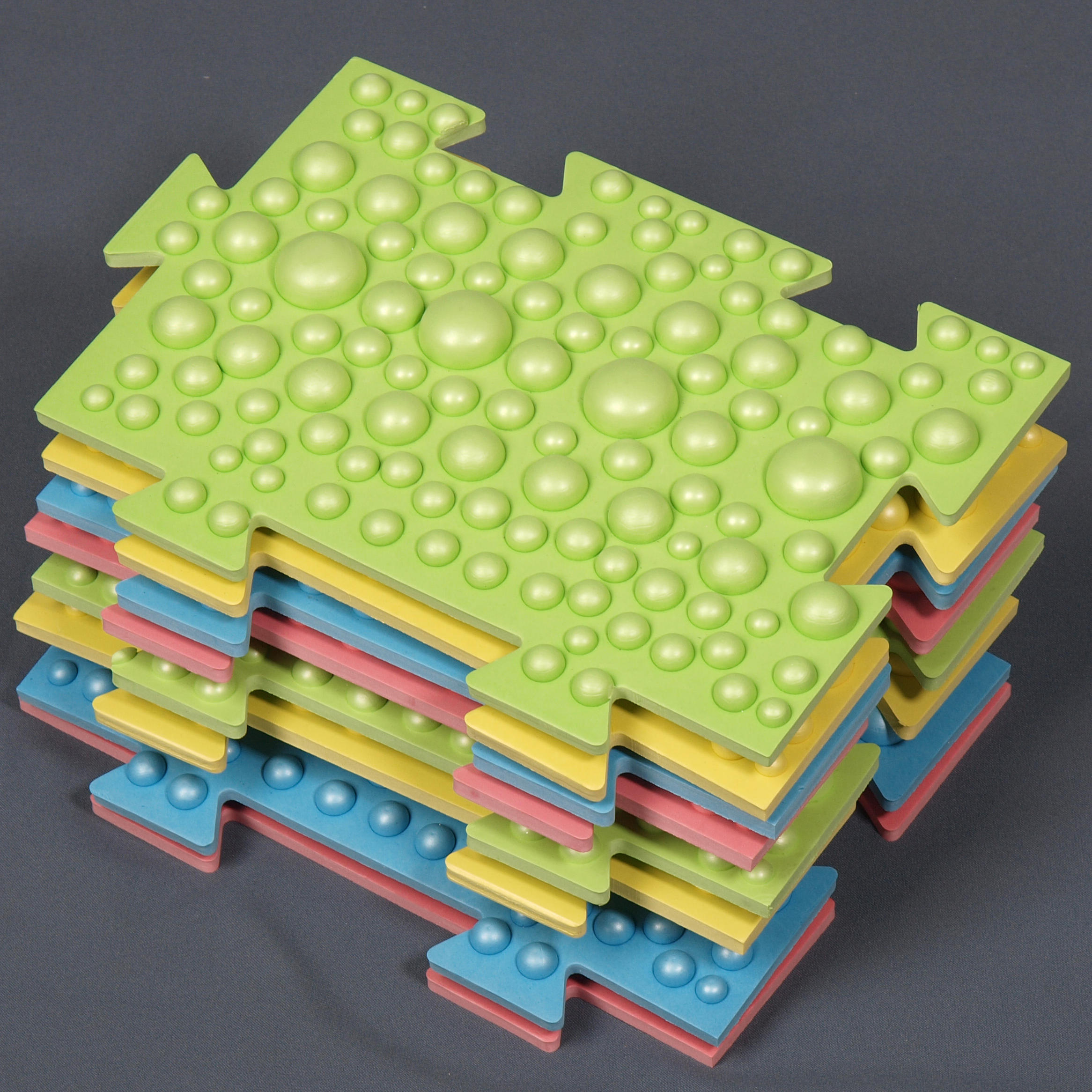 1. Ортопедический массажный коврик Fosta F 0810 используется для профилактики развития, а также для лечения всех видов плоскостопия у детей. Кроме того, он используется при наличии ассимметричной походки и при различных нарушениях опорно-двигательного аппарата. Ортопедический коврик для детей F 0810 выполнен из специального материала - пенополиэтилена. Этот материал является прочным, износостойким, гибким и обладает выраженными амортизирующими свойствами. Изделие состоит из разъемных элементов-модулей, соединенных между собой по принципу «паза и выступа». Массажные бугорки, расположенные на поверхности модулей, имеют разную высоту и диаметр. Данные бугорки производят стимулирующее воздействие на рецепторы подошвенной поверхности стопы ребенка, оказывают массажное действие и способствуют укреплению мышц стопы и голени, помогая формированию физиологических сводов стопы. Благодаря разъемной конструкции, размеры изделия можно увеличить путем наращивания или же наоборот, уменьшения, разъединяя его элементы. Ортопедический коврик для детей изготовлен из вспененного полимерного материала ярких цветов, что делает занятия на нем не только полезными, но также веселыми и увлекательными. Использовать коврик можно с первых шагов ребенка и до 14 лет. Производить чистку коврика рекомендуется чистой тканью, смоченной мыльным раствором. После обработки необходимо сполоснуть коврик теплой водой, а затем насухо вытереть его мягкой салфеткой. Изделие защищено патентом РФ № 46181. Количество элементов-модулей: 8. Размер одного элемента-модуля: 27,3 х 17,8 см. Цена 800 рублей