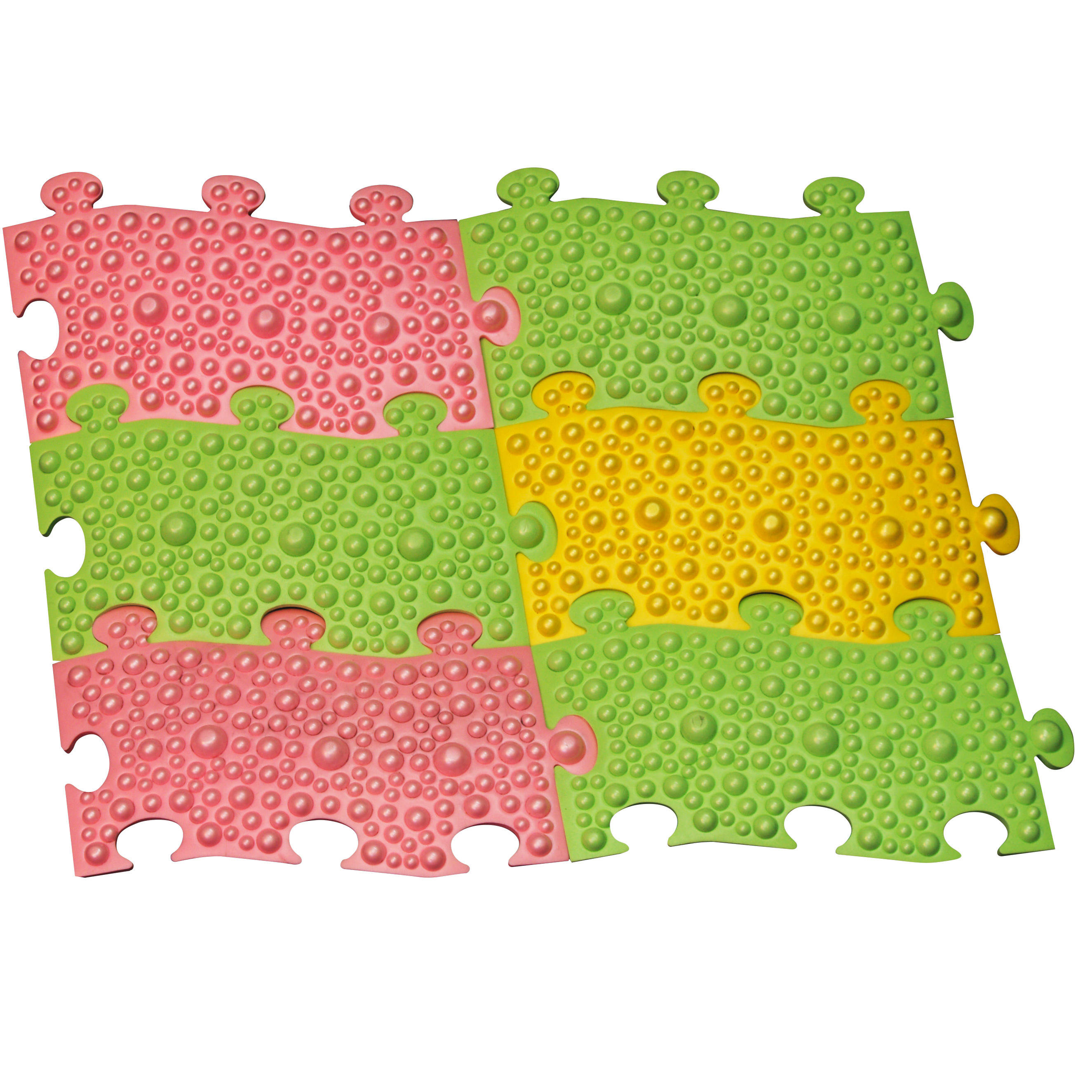 2. Коврик массажный детский Комф-Орт К 811 применяется для лечения всех видов плоскостопия у детей, а также для профилактики их развития. Более того, данный коврик используется при наличии ассимметричной походки, при различных нарушениях опорно-двигательного аппарата и при различных неврологических расстройствах. Массажный коврик для детей К 811 выполнен из специального материала - пенополиэтилена. Этот материал является прочным, износостойким, гибким и обладает амортизационными свойствами. Изделие состоит из специальных разъемных элементов-модулей, сегменты соединяются по принципу «паза и выступа». Массажные бугорки, которые расположены на поверхности модулей, имеют различную высоту и диаметр, что позволяет производить стимуляцию рецепторов подошвенной поверхности стопы ребенка, а также оказывает массажное действие и помогает укреплению мышц стопы и голени. Данное воздействие способствует формированию физиологических сводов стопы. Благодаря разъемной конструкции массажного коврика его размеры можно увеличить путем наращивания или же наоборот, уменьшения, разъединяя его элементы. Изделие выполнено из вспененного полимерного материала ярких цветов, что делает занятия на нем не только полезными, но также веселыми и увлекательными. Использовать данный коврик можно с первых шагов ребенка и до 14 лет. Производить чистку изделия рекомендуется тампоном, смоченным мыльным раствором. После обработки необходимо сполоснуть его теплой водой. Затем необходимо насухо вытереть коврик мягкой салфеткой. Изделие защищено патентом РФ № 46181. Массажный коврик для детей К 811 поставляется в яркой подарочной упаковке. Количество элементов-модулей: 6. Размер одного элемента-модуля: 40 х 20 см. Цена 1100 рублей
