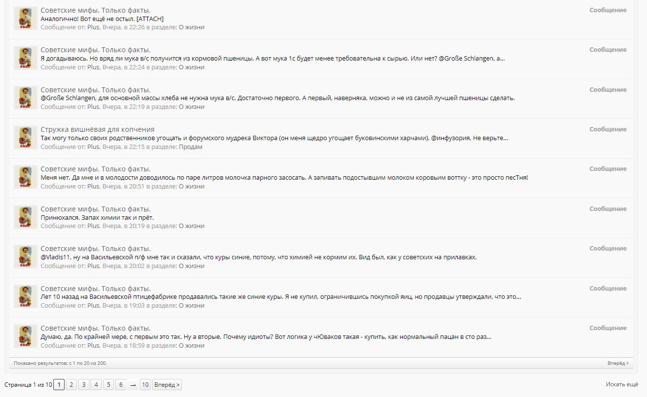 @Plus, забудь уже про старое и доброе. Там ты мог отсмотреть всего 10000 своих сообщений, а здесь можешь листать до бесконечности. Тем более, если что-то надо предметно, это можно найти с помощью обычного поиска по форуму. Если вспомним старое и доброе, то поиск там вообще почти не работал.