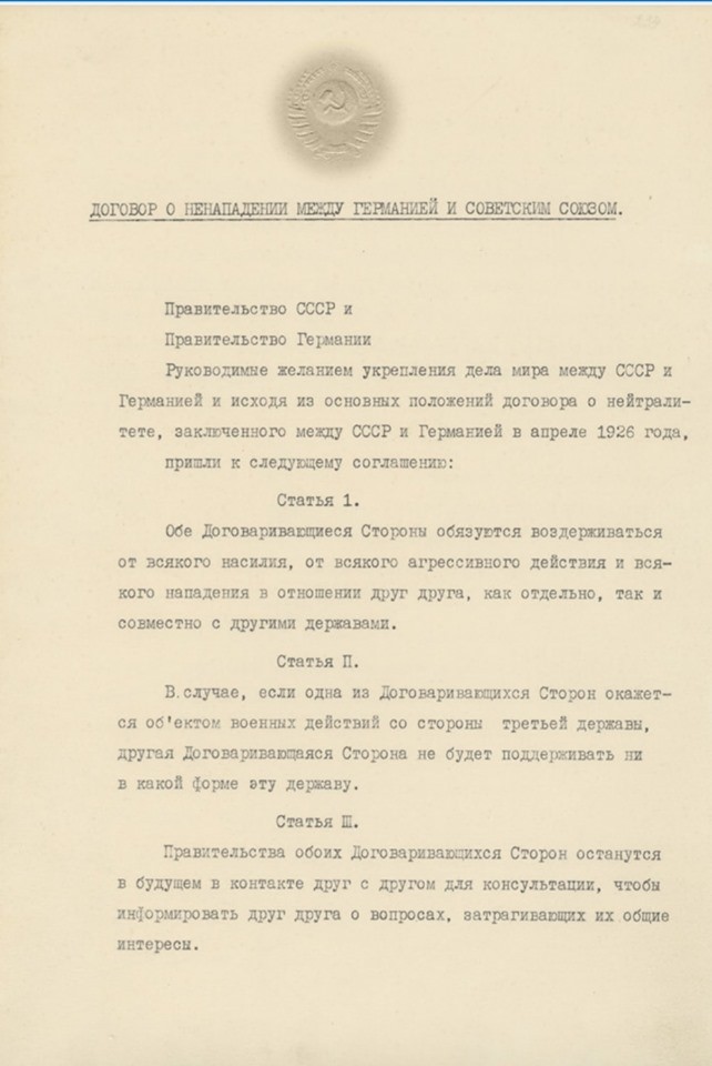 @kajuga, а чего ты путаешь разные вещи? Россия-Германия подписан спустя почти год после захвате Чехословакии Германией и Польшей. При активном сотрудничестве с Великобританией и долженствующей защищать Чехословакию по договору с СССР Францией. Это, на мой взгляд, настоящее начало второй мировой. СССР впрягся в делёж тогда, когда окончательно понял, что в Европе, той Европе, его интересы никому не интересны. Более того, бОльшая часть стран действует с целью их, интересов, ущемления. А Польша получила в итоге то, что сама провернула с Чехословакией. Я не говорю, что СССР белый и пушистый, но таковых в Европе тогда и не было. Вот чехи может были... Хотя тоже вряд ли. И взваливать на СССР сколь нибудь значительную часть вины за вторую мировую - как минимум глупо. Понятно желание сделать это бывших сателлитов Союза. Понятно желание тех, кто реально способствовал началу войны, а некоторые потом ещё и активно помогали немцам воевать, но вот желание тех, кому эмоции обиды не мешают - не понятно. Значит - есть эмоции. Причём антисоветские. Почему?
