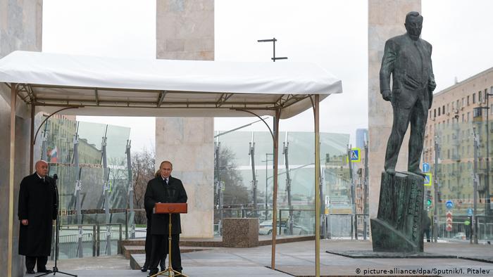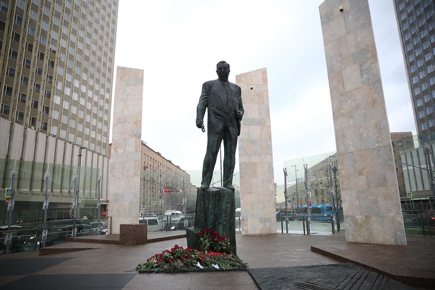 "В сквере напротив здания МИД России на Смоленской площади открыли памятник политику, бывшему руководителю Службы внешней разведки, Министерства иностранных дел, а затем и правительства России Евгению Примакову. Примаков запомнился на посту премьер-министра (с сентября 1998 г. по 12 мая 1999 г.) «разворотом над Атлантикой»: он прервал полет в Вашингтон после начала бомбардировок Югославии. Умер Примаков в июне 2015 г. 29 октября 2019 г. ему исполнилось бы 90 лет. Если у кого были сомнения в том, кому памятник на самом деле, то их развеял председатель Государственной думы Вячеслав Володин. Он прямо сказал - Примаков "с Путиным представлял себе будущее России" и "в Путине видел спасение России и развитие России". Слегка повернутая в движении, фигура Примакова на постаменте призвана символизировать знаменитый разворот самолета премьер-министра над Атлантическим океаном в марте 1999 года. Он летел с визитом в США и принял решение вернуться в Москву, когда узнал о начале операции ВВС НАТО против Югославии. Это тот момент, от которого путинское руководство отсчитывает начало "многовекторной внешней политики", "вставания с колен" и бессчетных прочих концепций, призванных объяснить и оправдать антиамериканизм, изоляционизм и поддержку диктатур по всему миру, ставшие сутью его внешней политики." Путин открыл памятник Примакову. В церемонии принял участие весь политический бомонд – ФОТО – ВЕДОМОСТИ Комментарий: Как памятник Примакову стал памятником эпохе Путина | DW | 30.10.2019