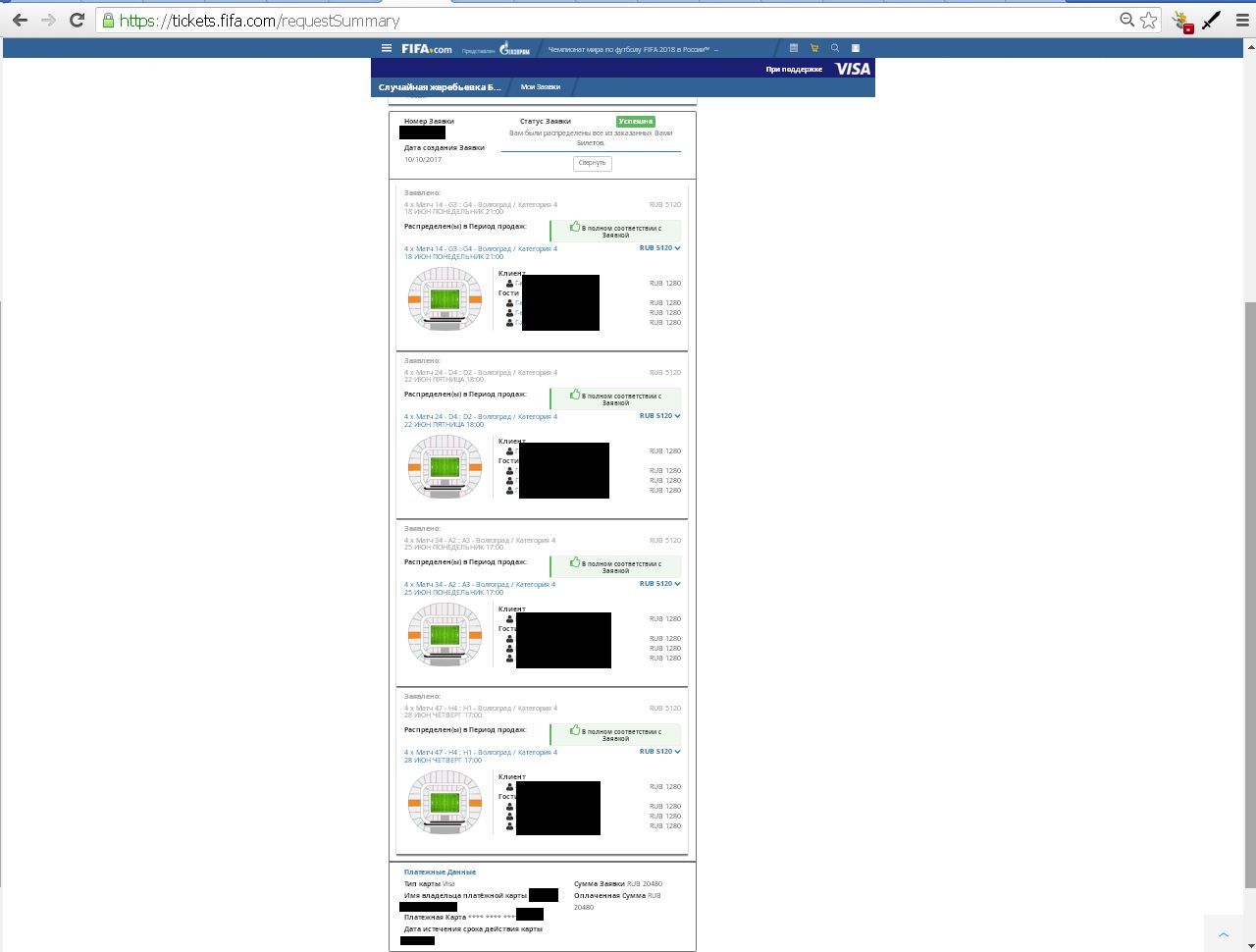 Приветствую всех любителей ЧМ. Оплачивал картой виза. Всё прошло успешно. Я так понял, что места узнаем, когда курьер доставит билеты? Удачи всем в приобретении билетов.