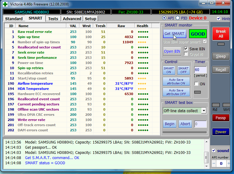 Вот два СМАРТа и сейчас тест поверхности проходят