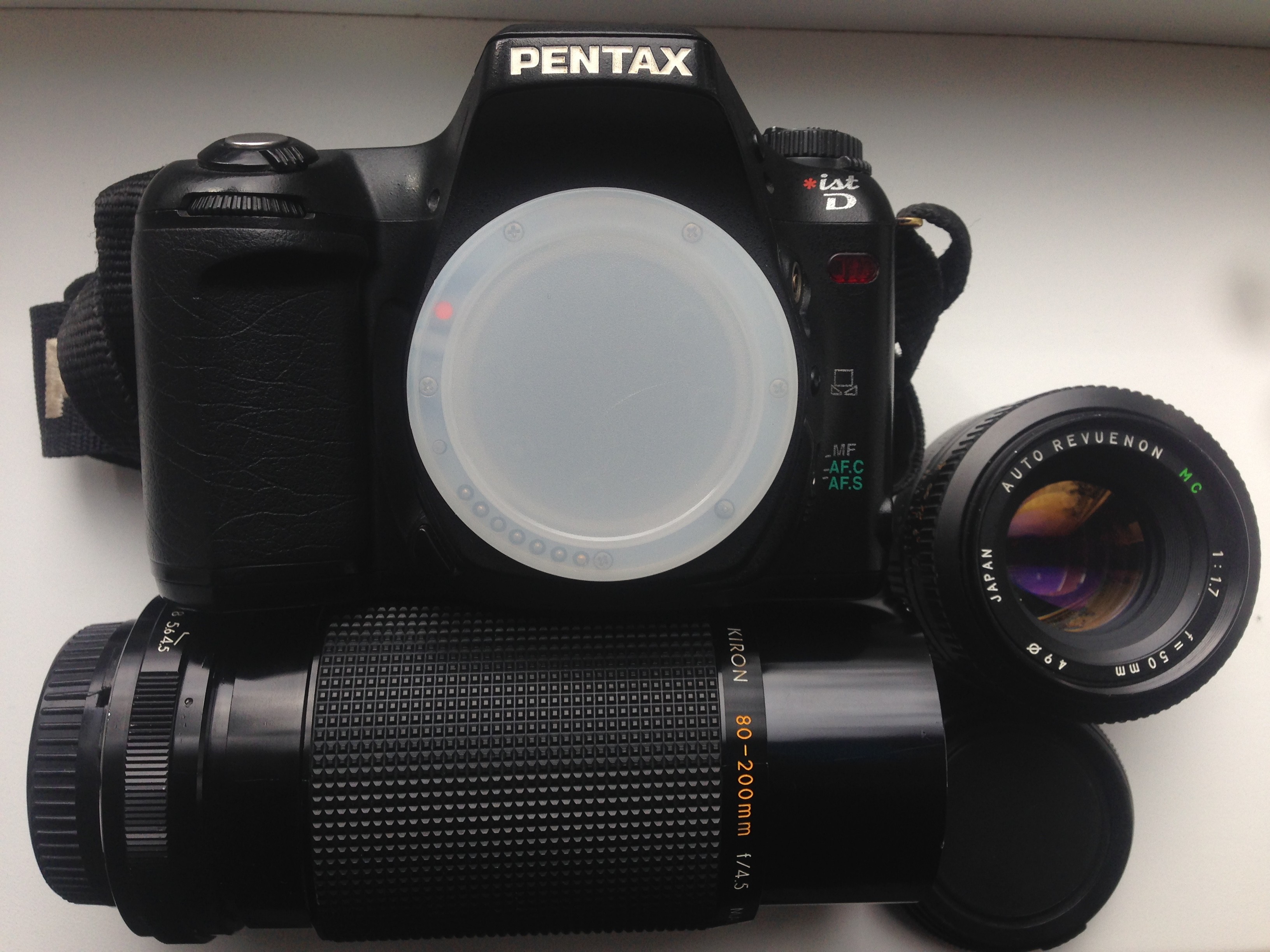 Зеркальная фотокамера любительского класса,в хорошем состоянии и полностью работоспособна. Единственная модель в классе которой производитель заявил до 100000 срабатываний затвора. Объективы-Kiron 80-200/4.5 Avto Revuenon 50/1.7 Символический ценник-6199!