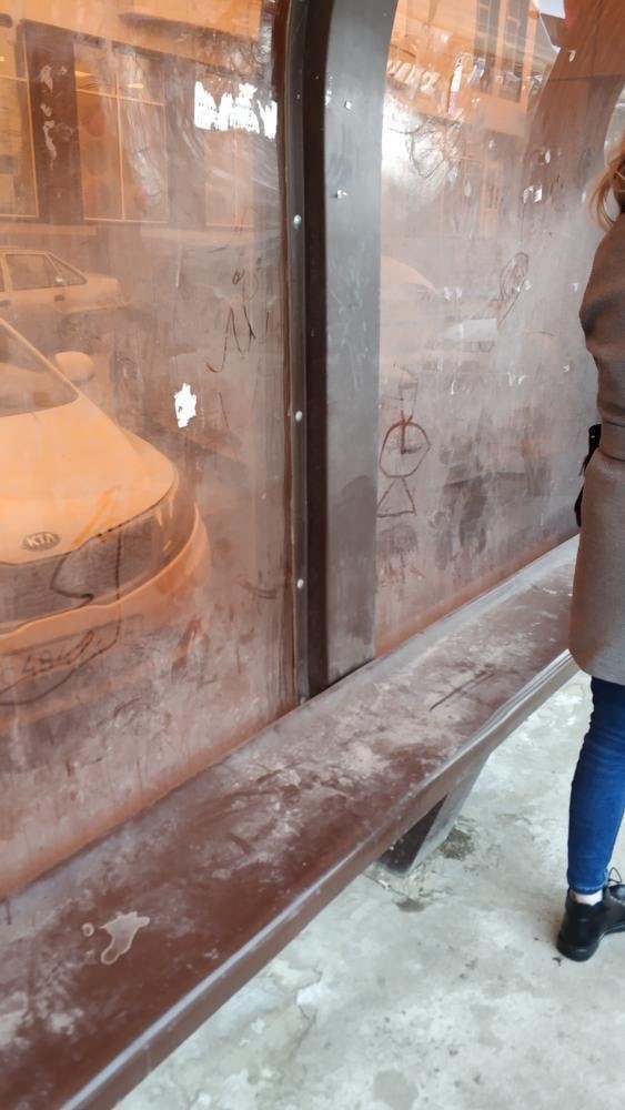 начни с себя ! Возьми бутылочку, тряпочку и протри ! За остановкой не забудь покормить собачек, убери бычки в пакет, донеси его до урны, заплати за вывоз мусора ! Будь хозяином на своей земле, в своём городе !!!