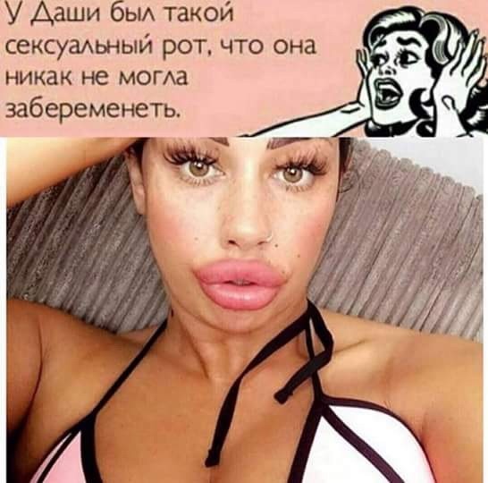 есть женщины, которые не только вверху увеличивают себе губы. интересно другое - вам то всем какое дело? ну хочет человек пускай хоть хвост себе пришьет и копыта отрастит. вам оно мешает? не нравится не выискивайте такие картинки и не смотрите их. вас лично никто не заставляет себе наращивать что то, отрезать, пришивать или перекрашивать. у меня друг отца, адвокат, по какой то прихоти собирал коллекцию фотографий всяких бухариков, бомжей и прочих типов обоих полов, когда их на суд приводили. это я вам скажу чтото с чем то. да любая губошлепка из этой темы просто ангельская красавица и мадонна рафаэлевская по сравнению с ними. но чето их никто не обсуждает и не осуждает, типа того это святое, свое родное? найдено в Яндексе: