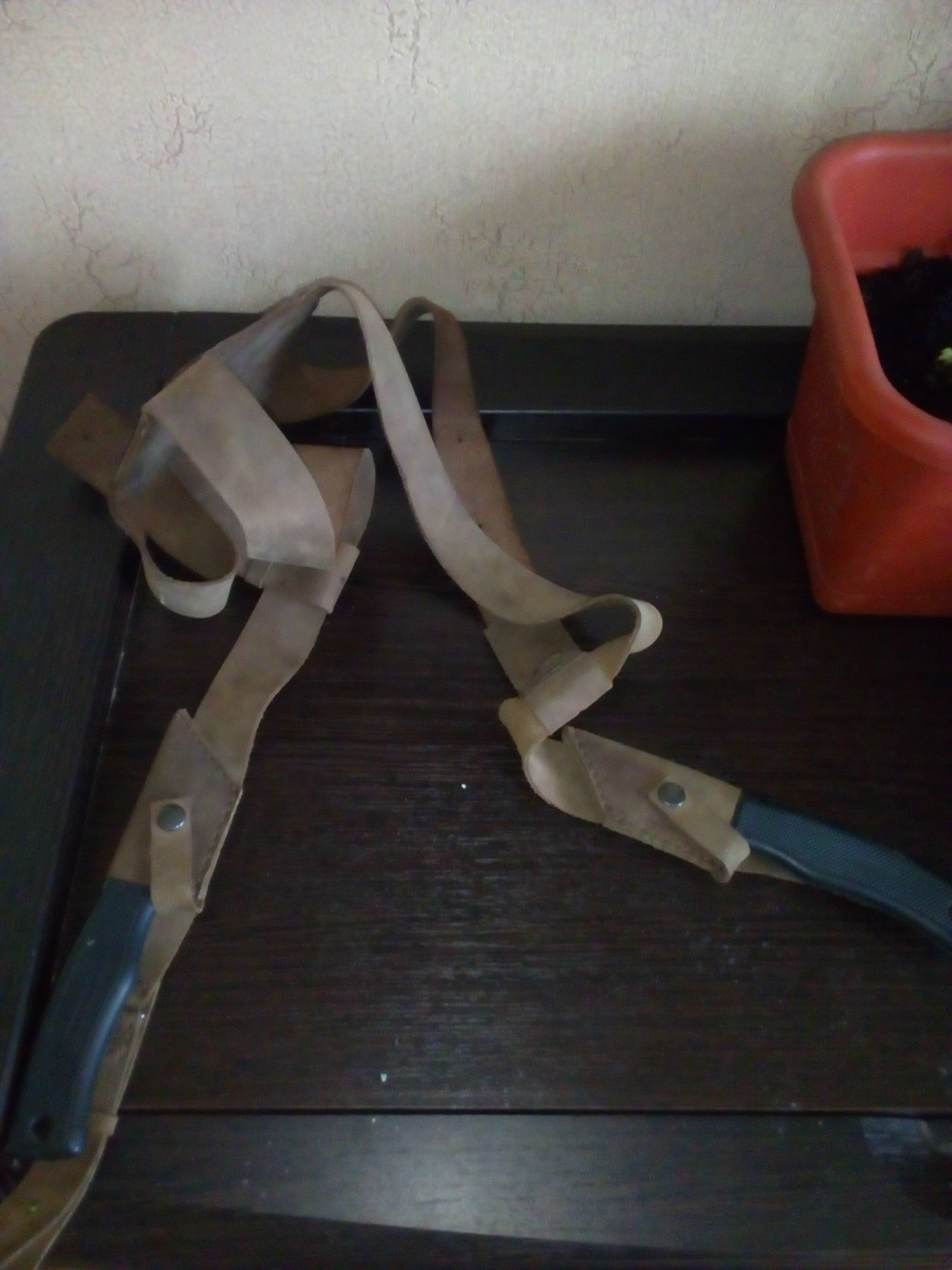Продам кожанную сбрую с двумя ножами для монтажников линолеумных полов. Натуральная кожа, подгонка по росту размерам, ножны с ножами отстегиваются. Два инструмента для резки линолеума в комплекте. Также можно распускать ковролин, резать картон, точить карандаши. Налетайте, заточчики карандашей и вкрыватели картонных коробок. Цена 1600, торг, обмен.