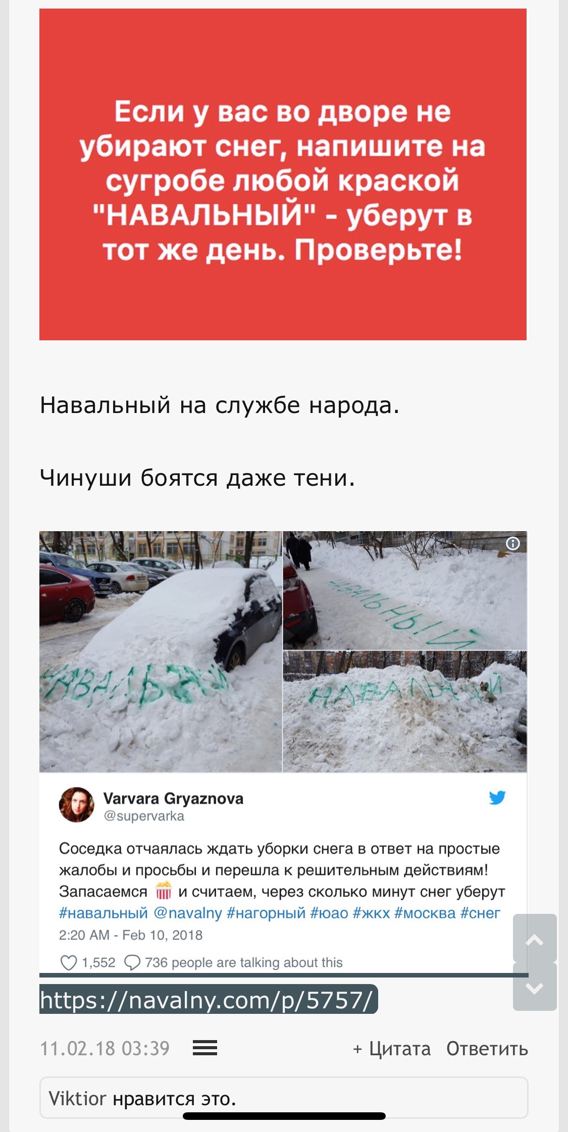 Началось ? Цитировать главного борца страны за свободу начали? Скоро локотки кусать начнёте вспоминая как попирали собственное право вытирая об Навального ноги.