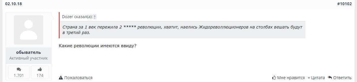 Чтоб не быть голословным, как некоторые тут, получай пруф. Я уже ни раз писал, что тут сидят или несколько или один звиздун, но под разными никами. И может даже спорить сам с собой и отвечать сам себе. И говорил что дэл бот зарплатный 100%. Вот скрины. На одних он от имени Обмывателя докапывается до меня про революции, а на одной сегодняшней, походу зашпарился и забыл перелогиниться, и уже от имени Дела с меня спрашивает: И лень рыться в темах, но он писал, что гадит еще в хохлячьих форумах сидит, но там его забанили. Наверное зиговал или усеренно бандеру хвалил. Только слепой или тупой наглухо не сможет увидеть в нём зарплатного бота. И это всего лишь пара ников которые спалились, по запарке хозяина. ИМХО остальные боты, кто подозрительно сильно шарит в нюансах и тонкостях пендосской жизни изнутри - тоже его клоны.